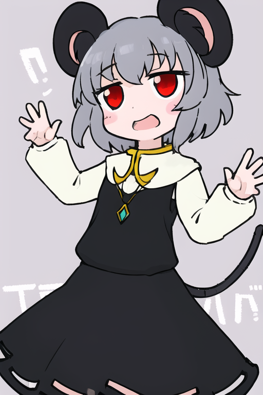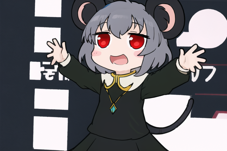 NYN,mouse ears,red eyes,black vest,black skirt,white sleeves,blue pendant,