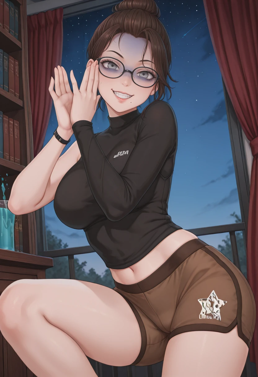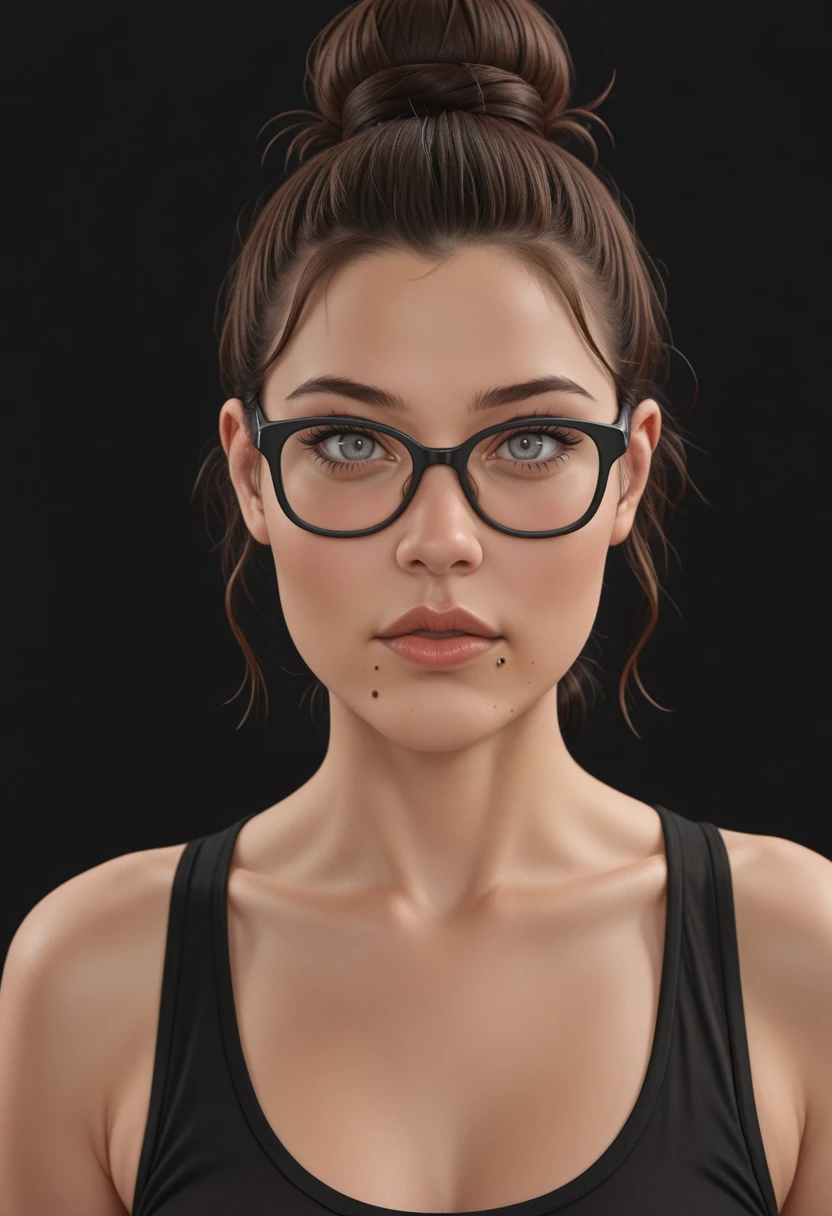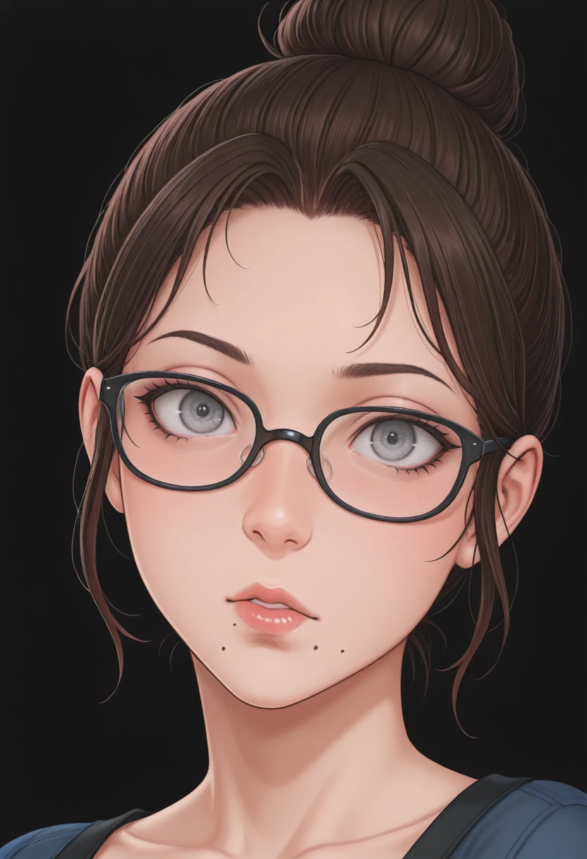 Use at least the following trigger word: altlssb, single hair bun, brown hair, grey eyes, mole under mouth, black-framed eyewear,
