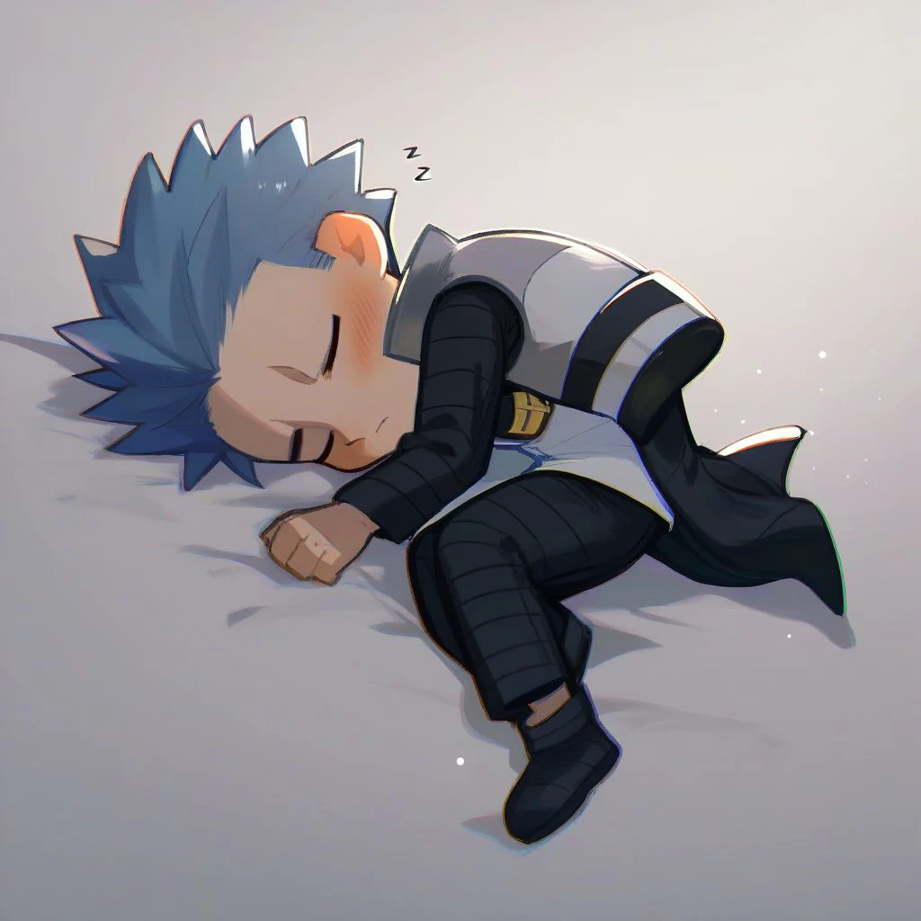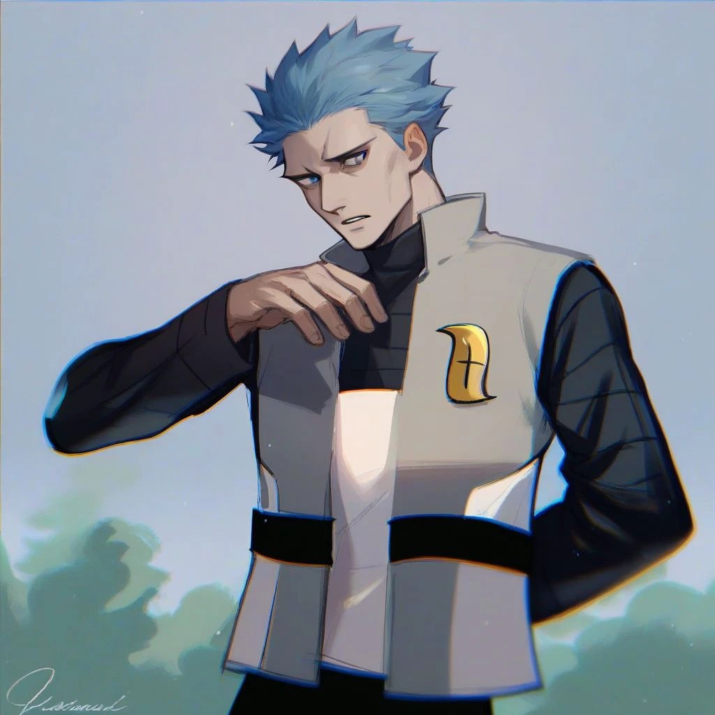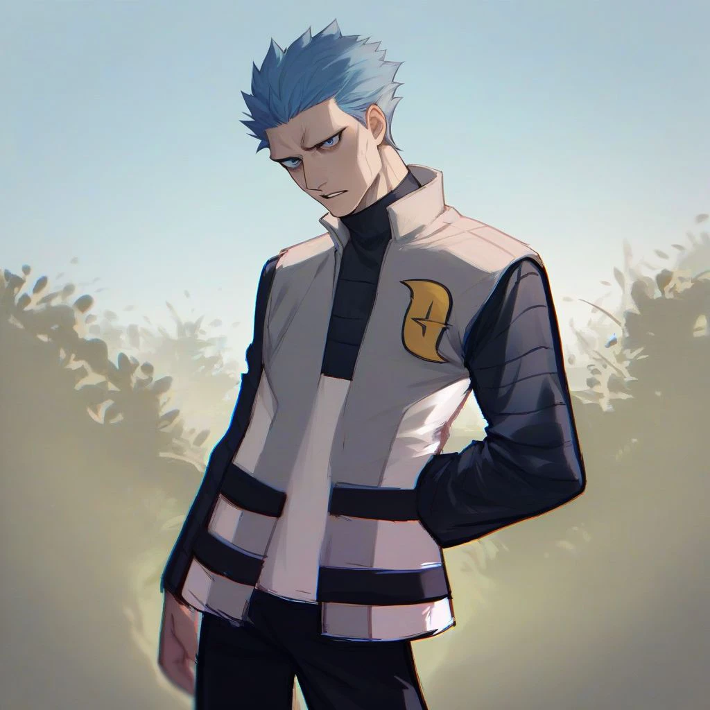 Cyrus_Normal, vest, grey vest, sleeveless vest, black shirt, long sleeves, black pants