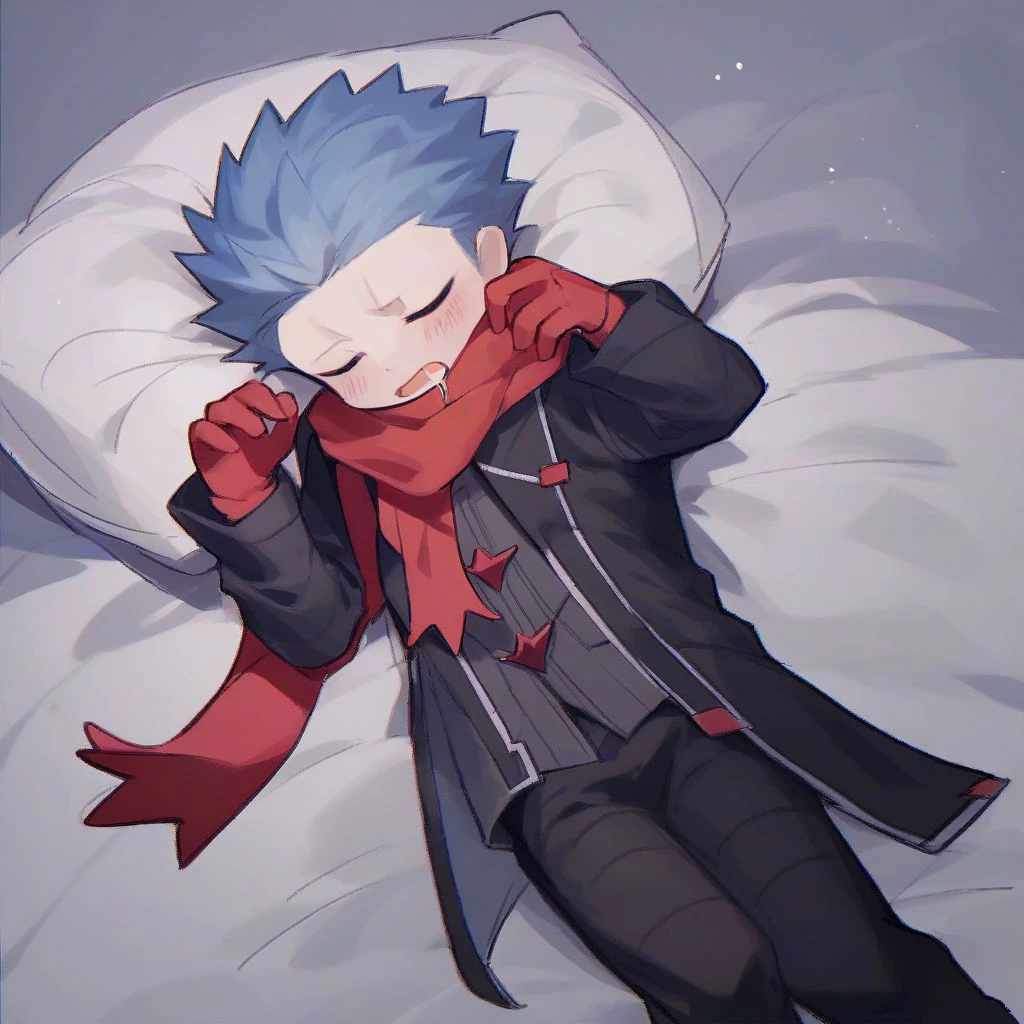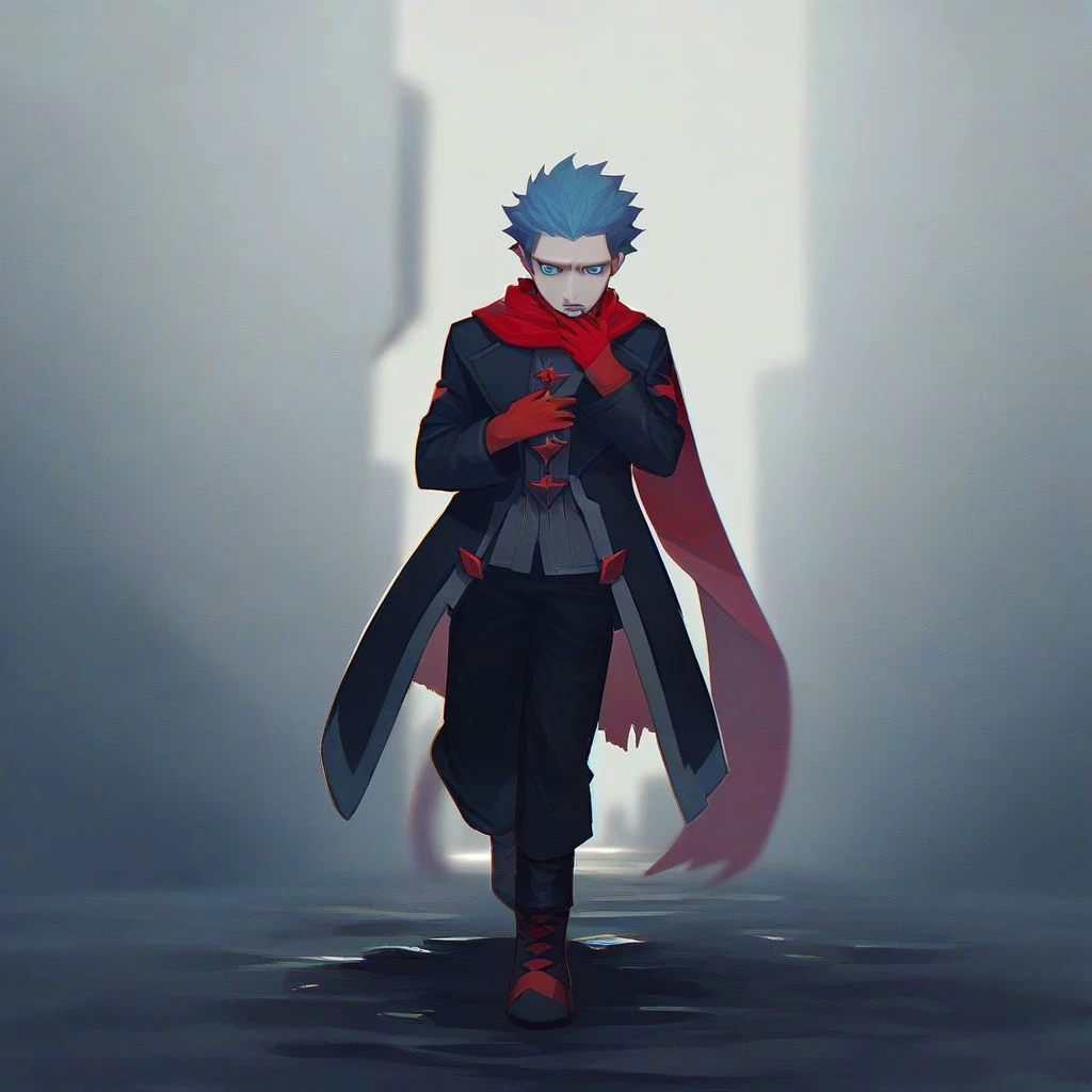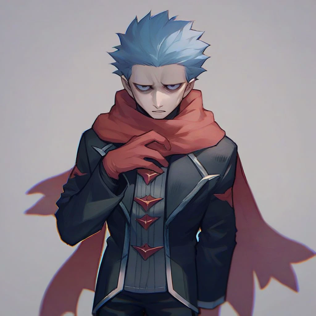 Cyrus_Sygna, black jacket, red gloves, black pants, scarf, red scarf