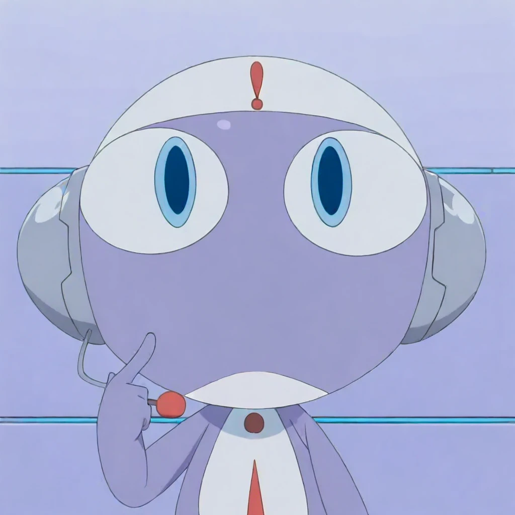 KGUrere, alien, light purple body, two-tone body, blue eyes, exclamaition mark, white hat, grey headphones, yellow bracelet, open mouth