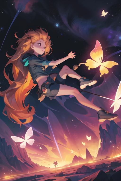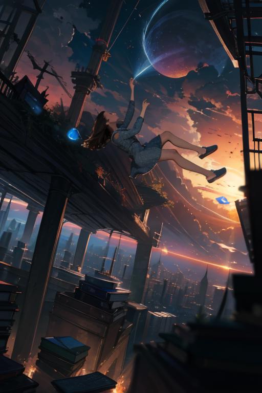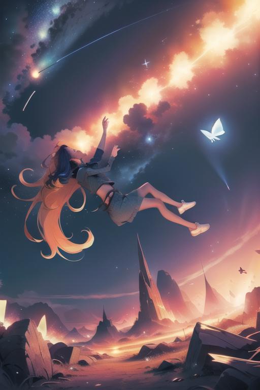 Recommended positive prompt words: falling,(from below:1.2),falling_blur,depth of field,floating,focused,