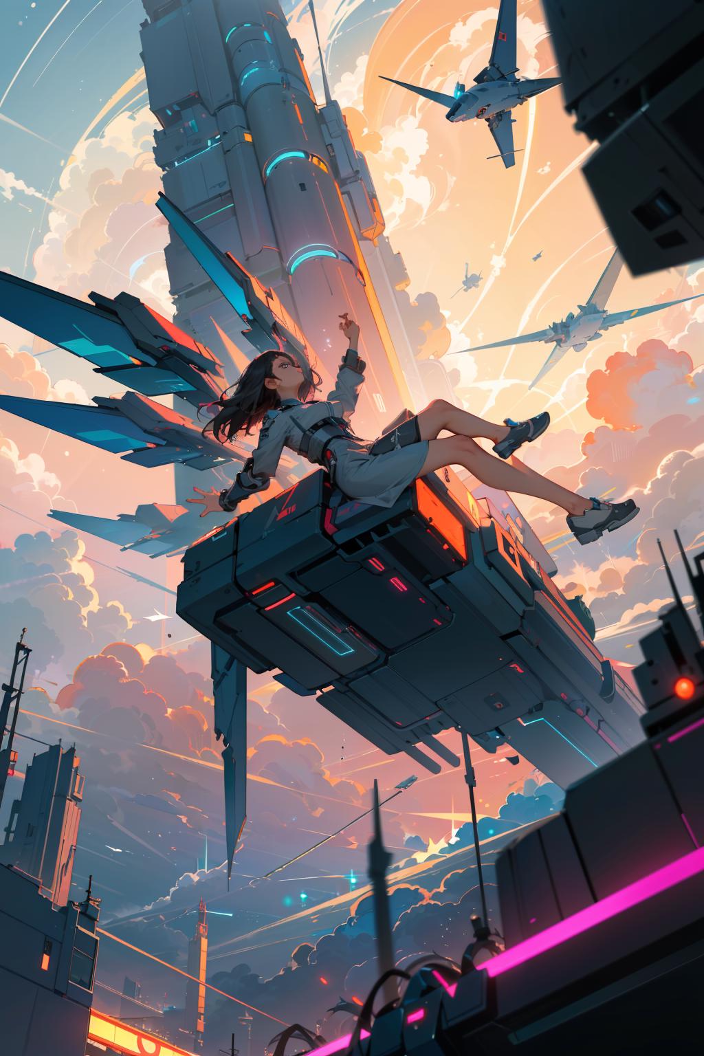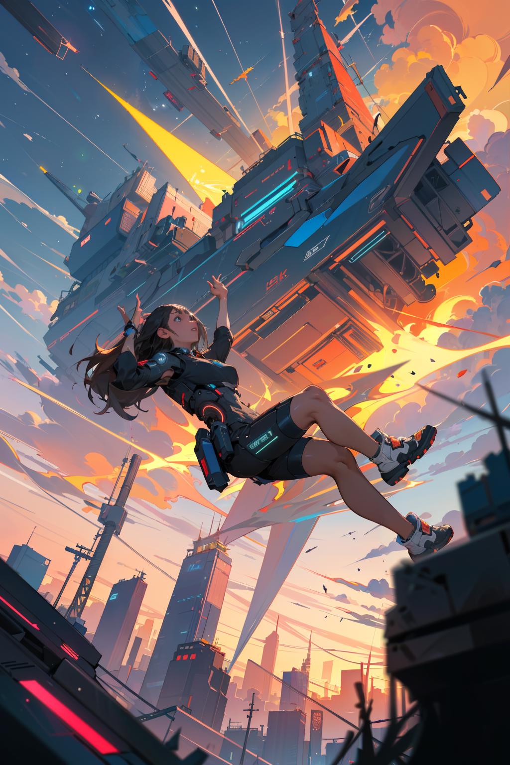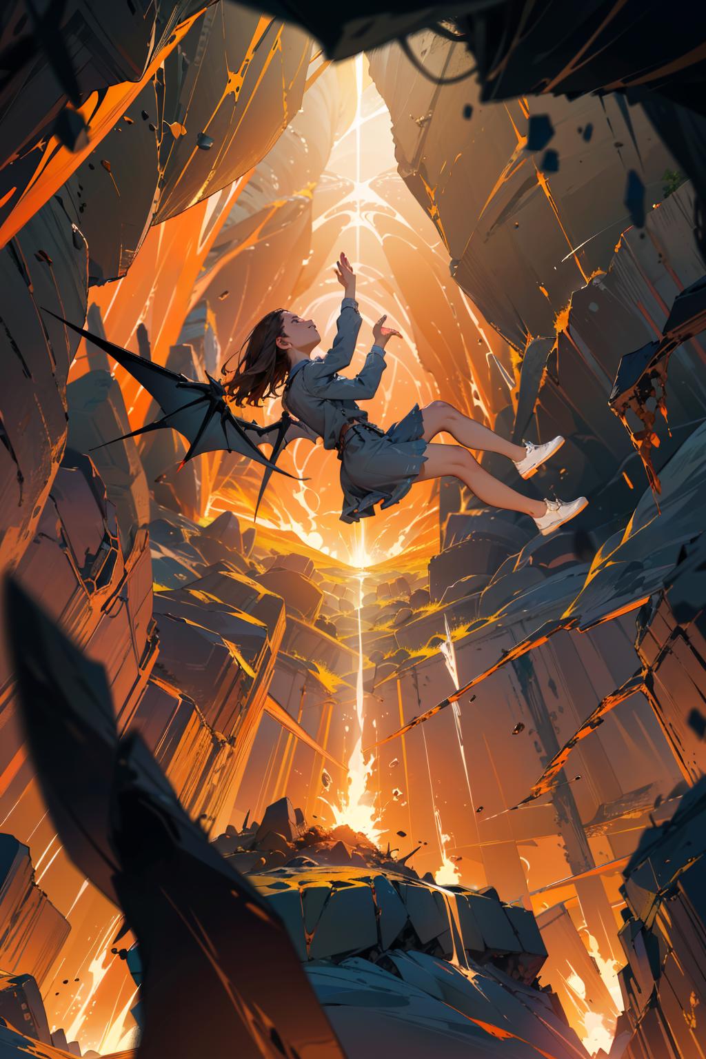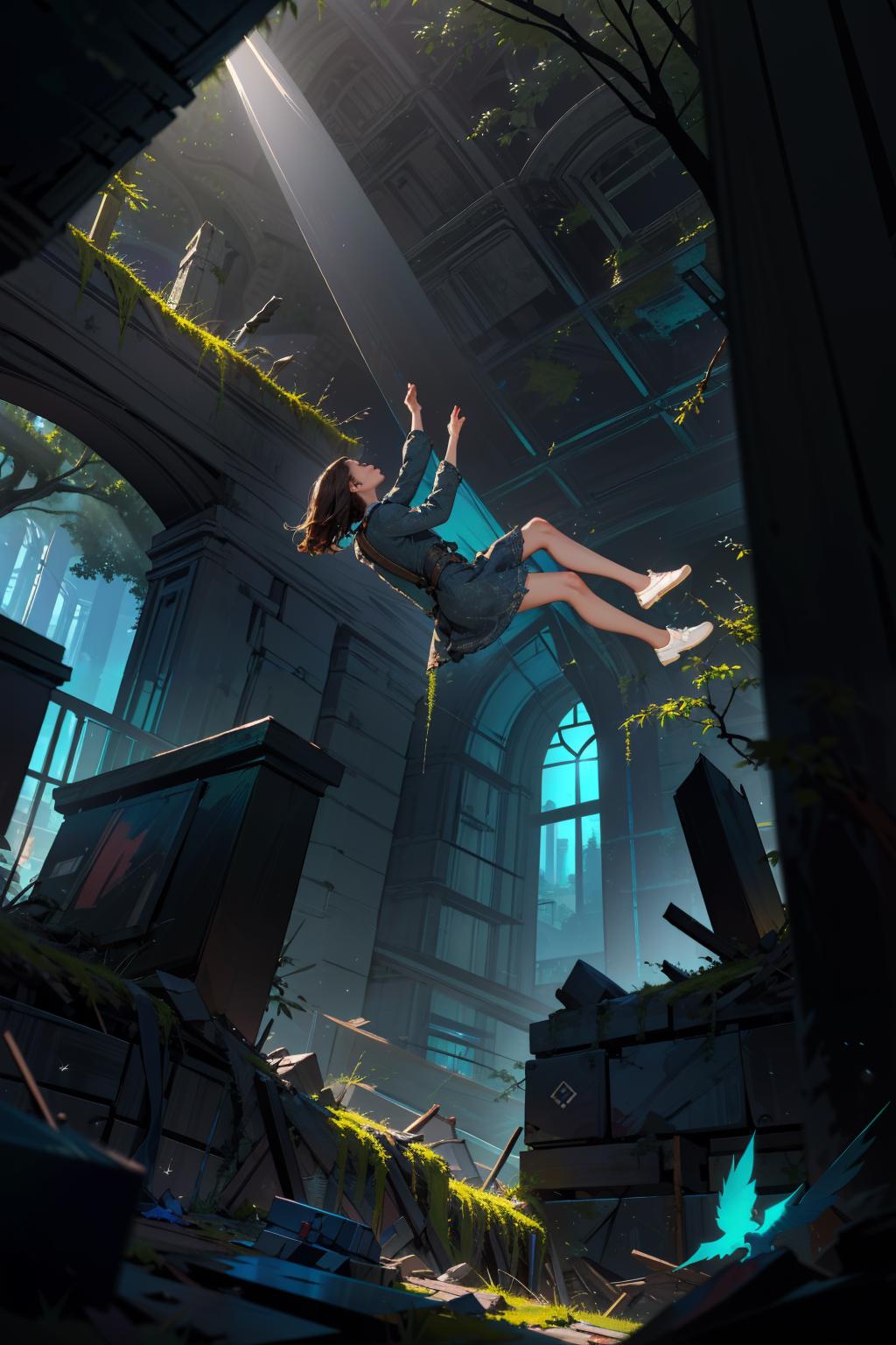 建议正向提示词:falling,(from below:1.2),falling_blur,depth of field,floating,focused, 其他想写什么就写什么。可以多试试。