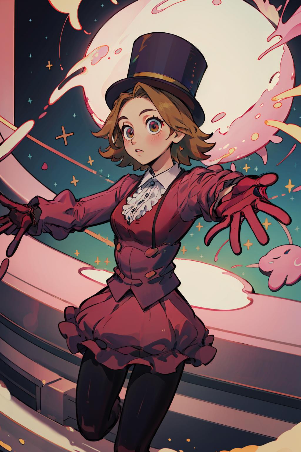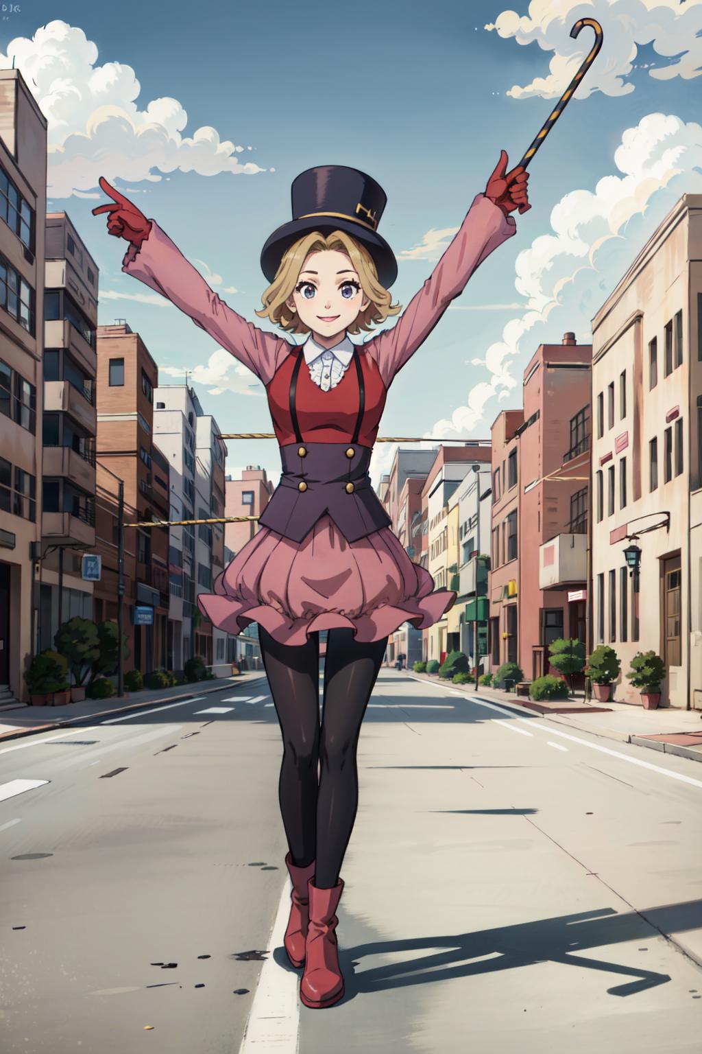 Pokemon Colosseum had so many great designs that became overlooked. The Street Performer trainer class is one of them I had to make a lora of. Trigger phrase is "stperformer", with top hat,pantyhose,pink shirt,pink skirt,and red gloves recommended for a game exact appearance.