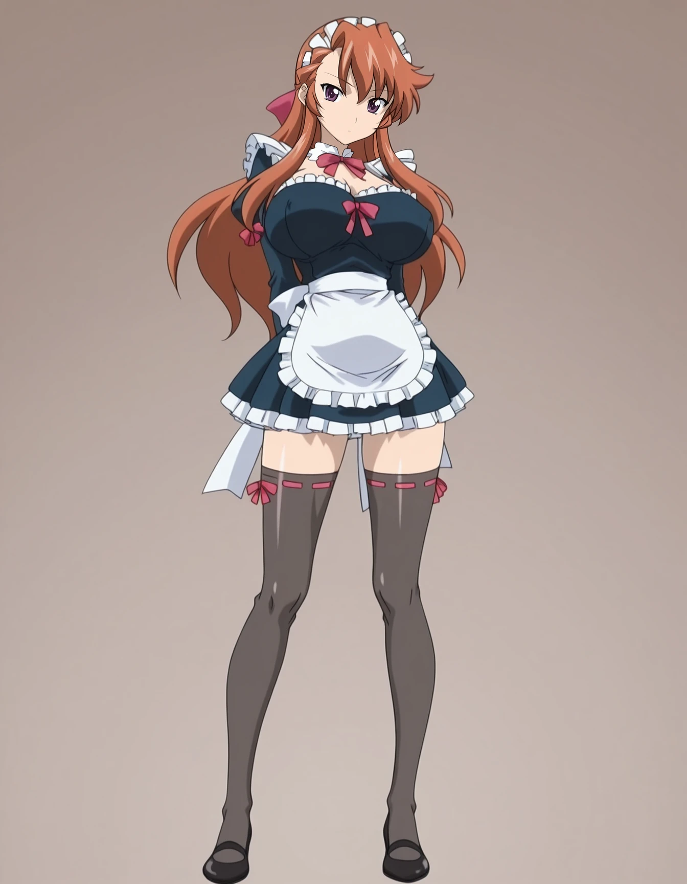mai_miori,long_hair,orange_hair,purple_eyes,large_breasts,maid,grey_thighhighs
