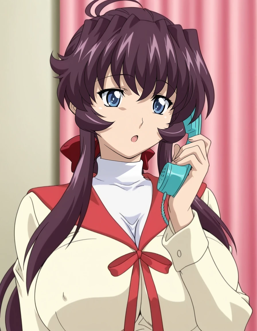 mai_bmk,mai_miwako,long_hair,ponytail,ahoge,purple_hair,blue_eyes,huge_breasts,maid,grey_thighhighsMiori Ai 水織愛衣