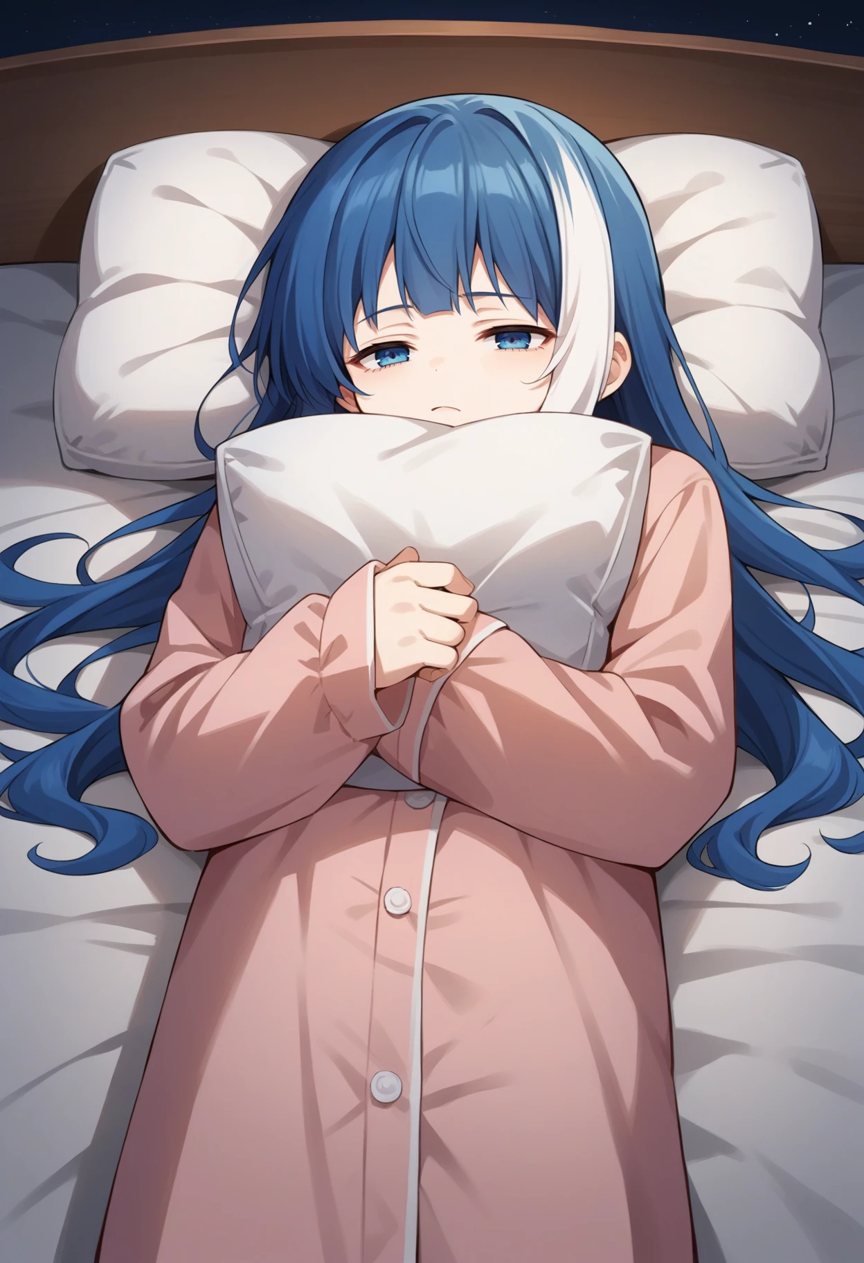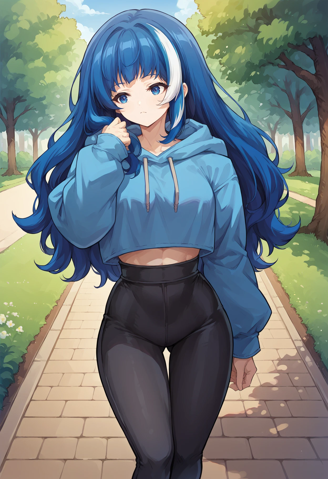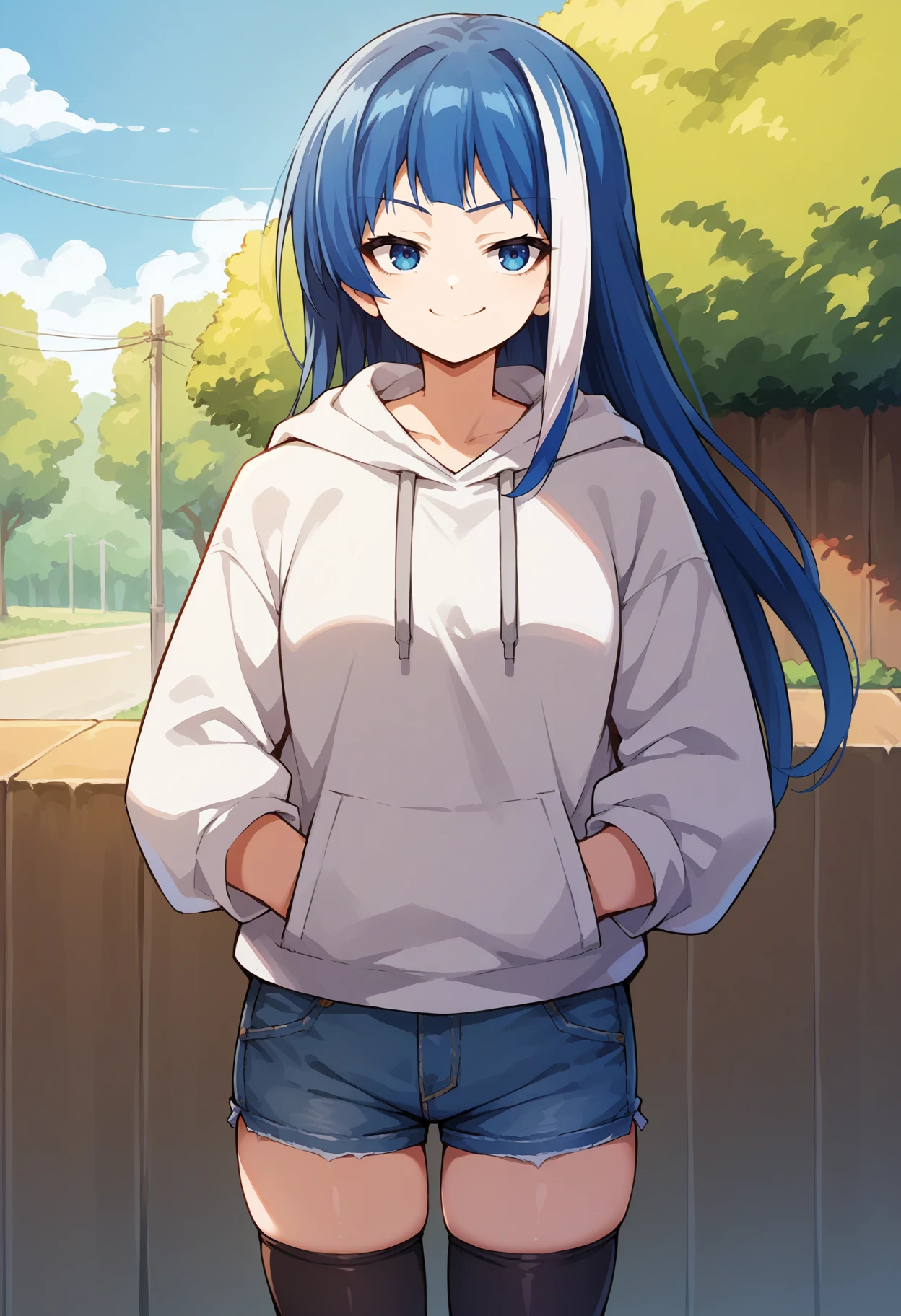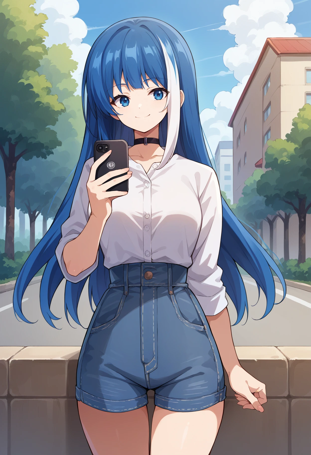 MutsumiYozakura, long hair, streaked hair, serafuku, white shirt, red neckerchief, long sleeves, blue skirt
