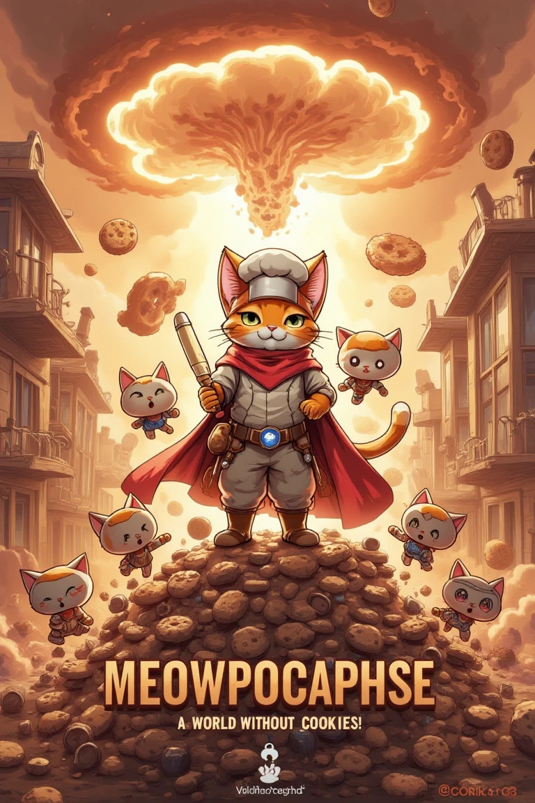 World Without Cookies Text: The ultimate nightmare: A world where cats have stolen all the cookies! 😱🍪 Scenario: