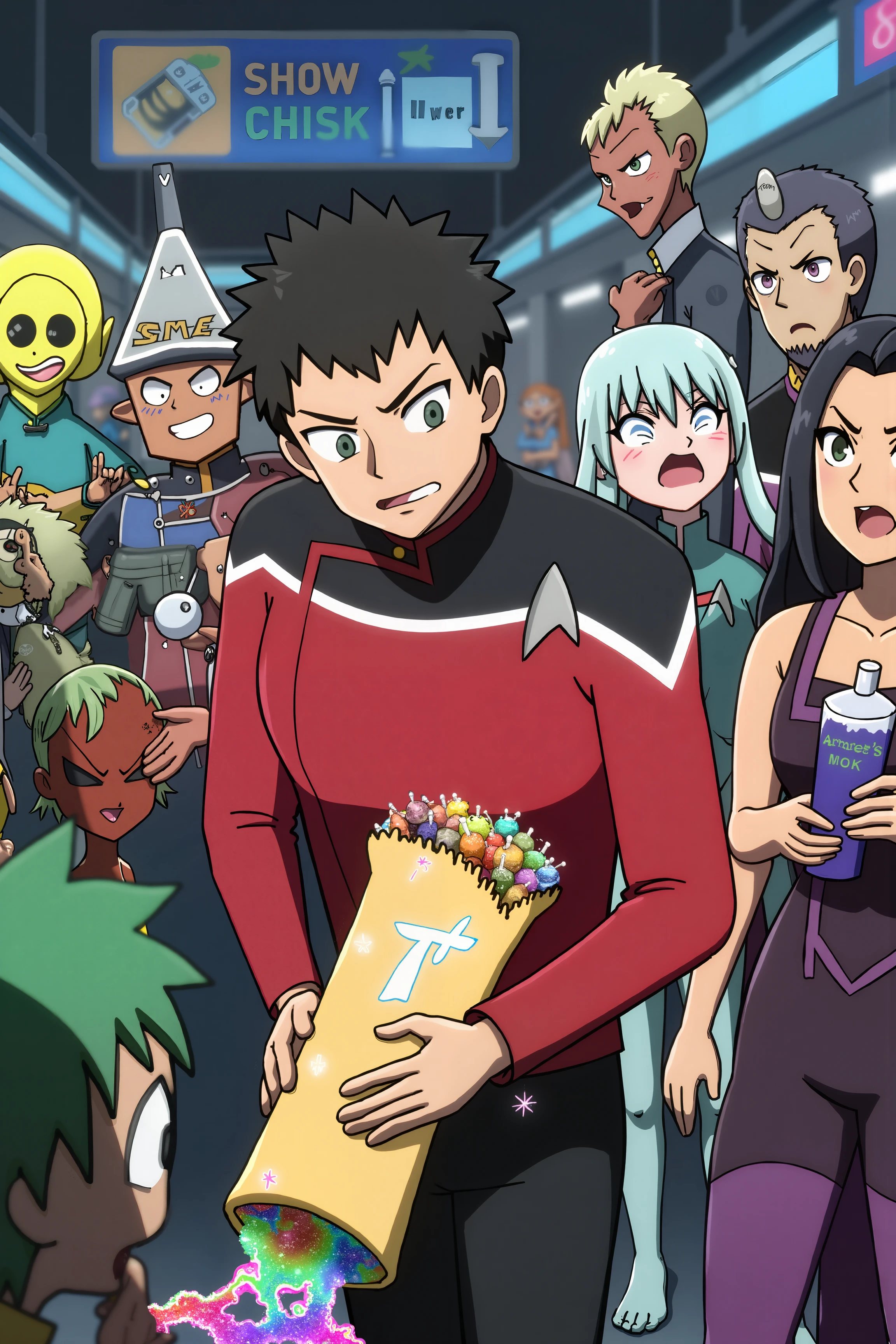 To get the uniform drawn like in the show, use word cartoon, but have in mind that the faces from the show were not trained in this LORA, so the show style will be seen mostly in the uniform itself.