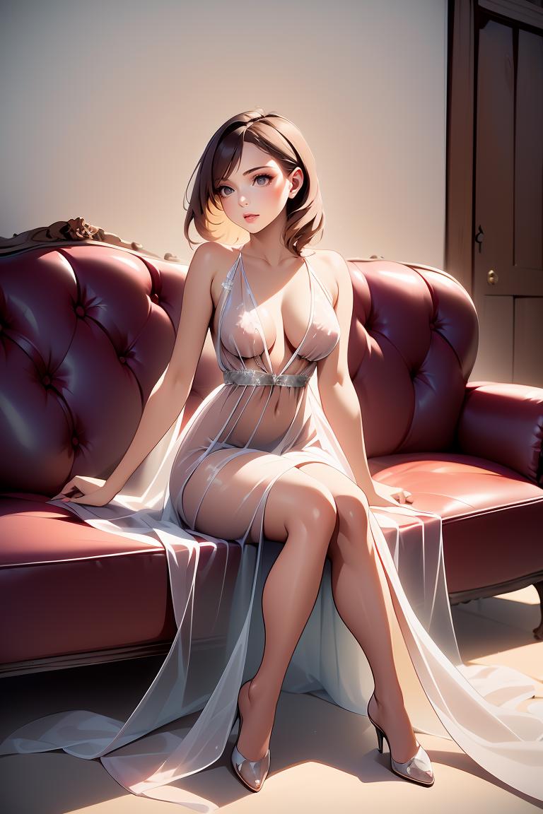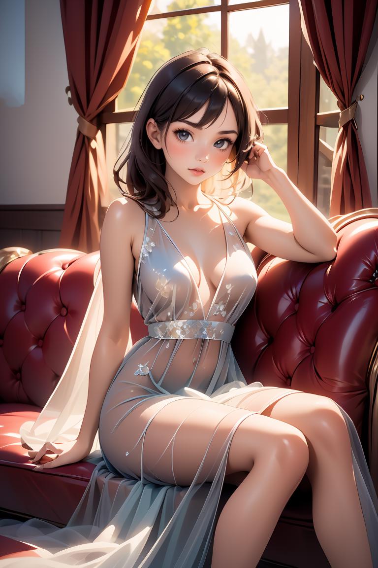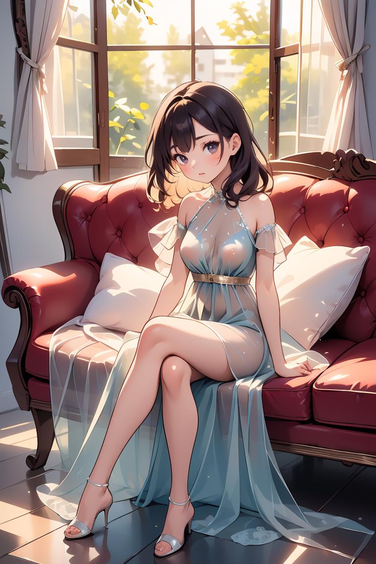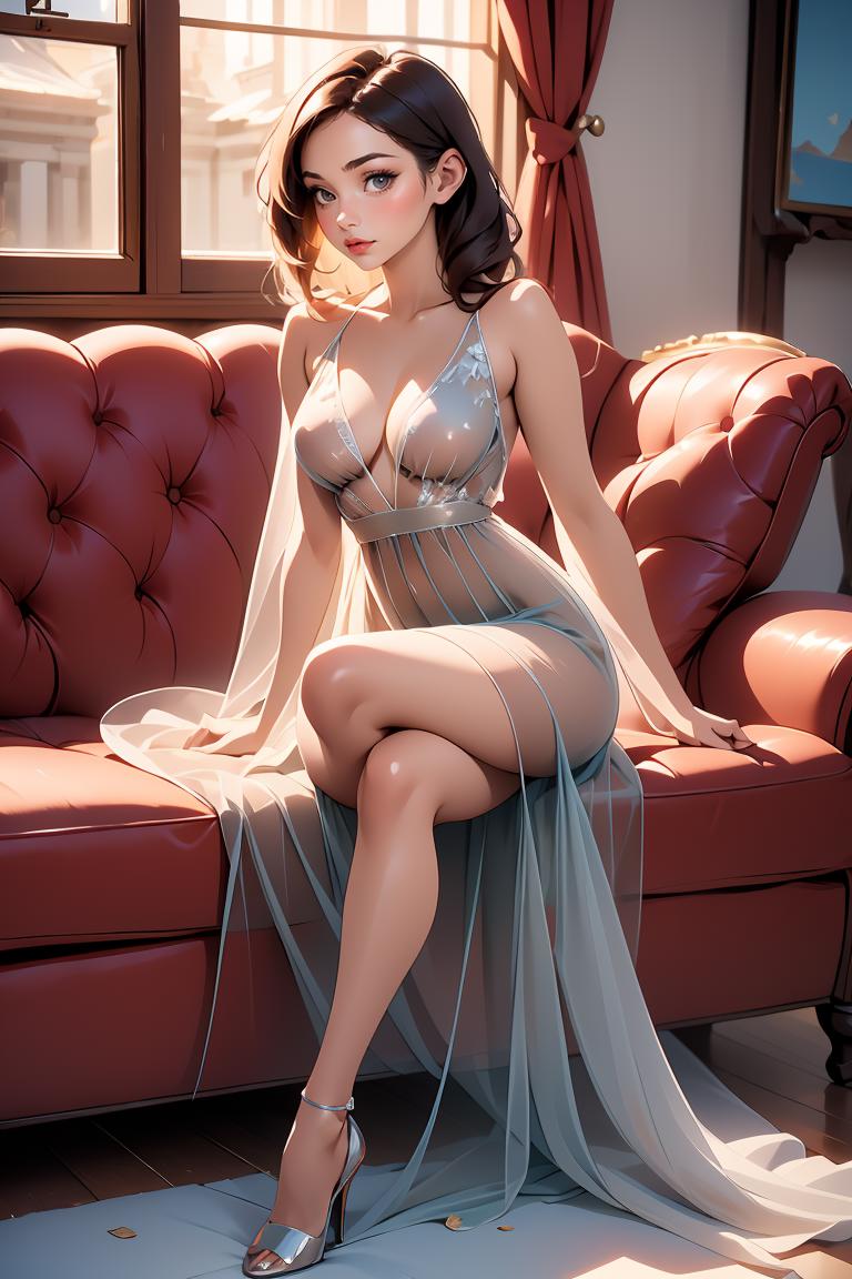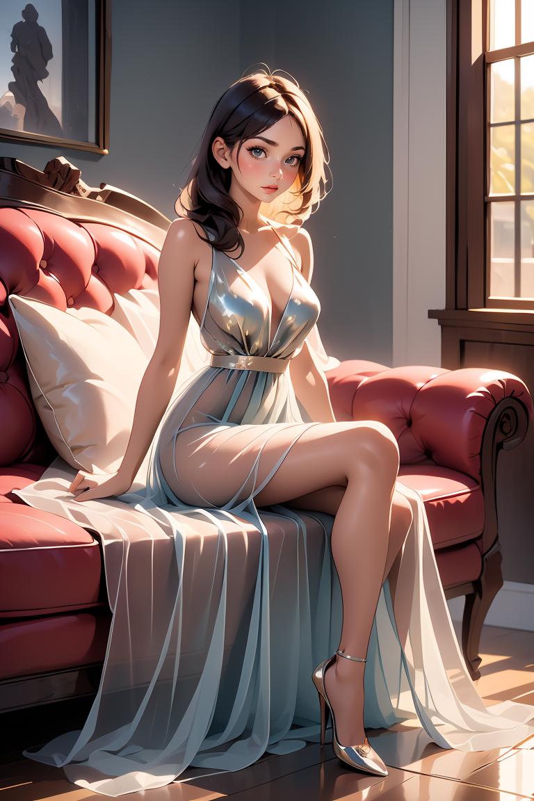 Light, silky dresses made from sheer fabrics that drape in ethereal ripples over the body.