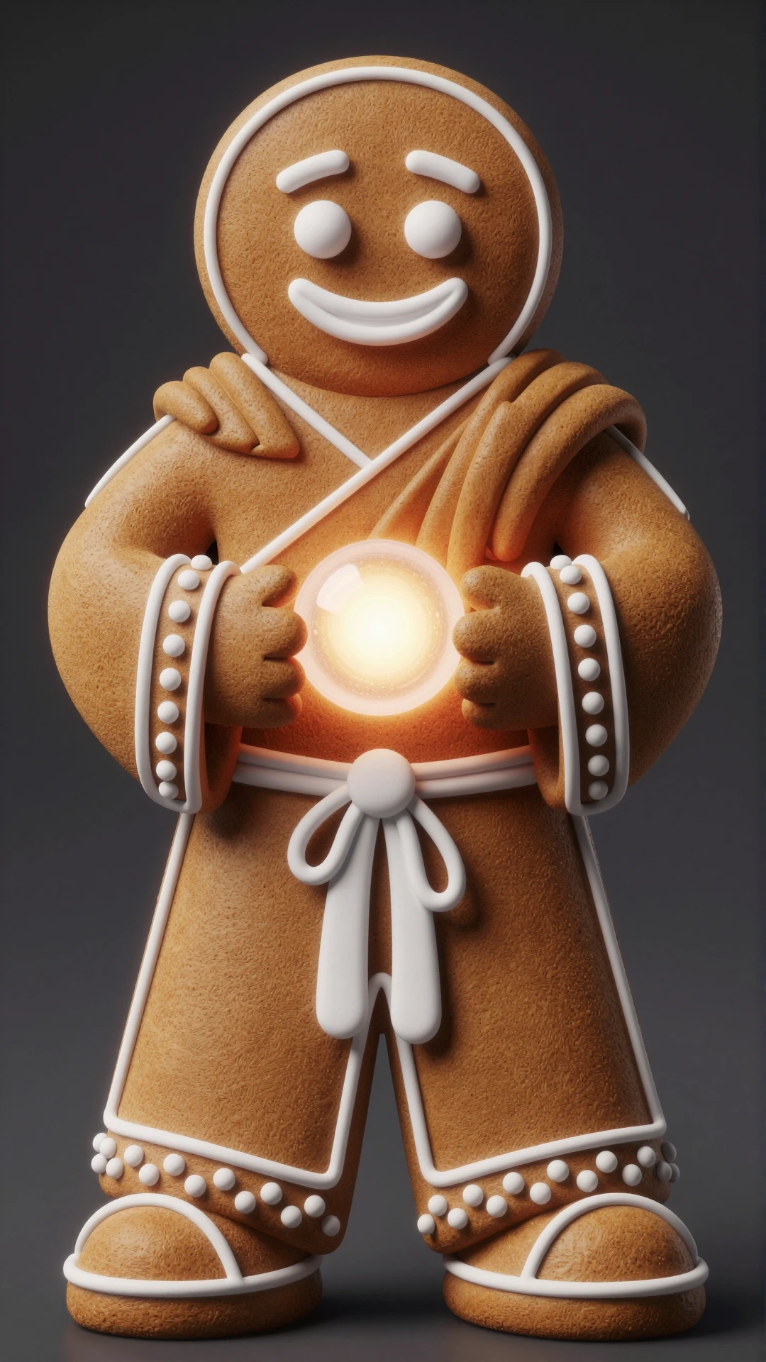 Example prompt: A high resolution photo of a gingerbread style 3D sculpture made out of gingerbread: An angel wizard knight <lora:gingerbread_style_zit:0.5>