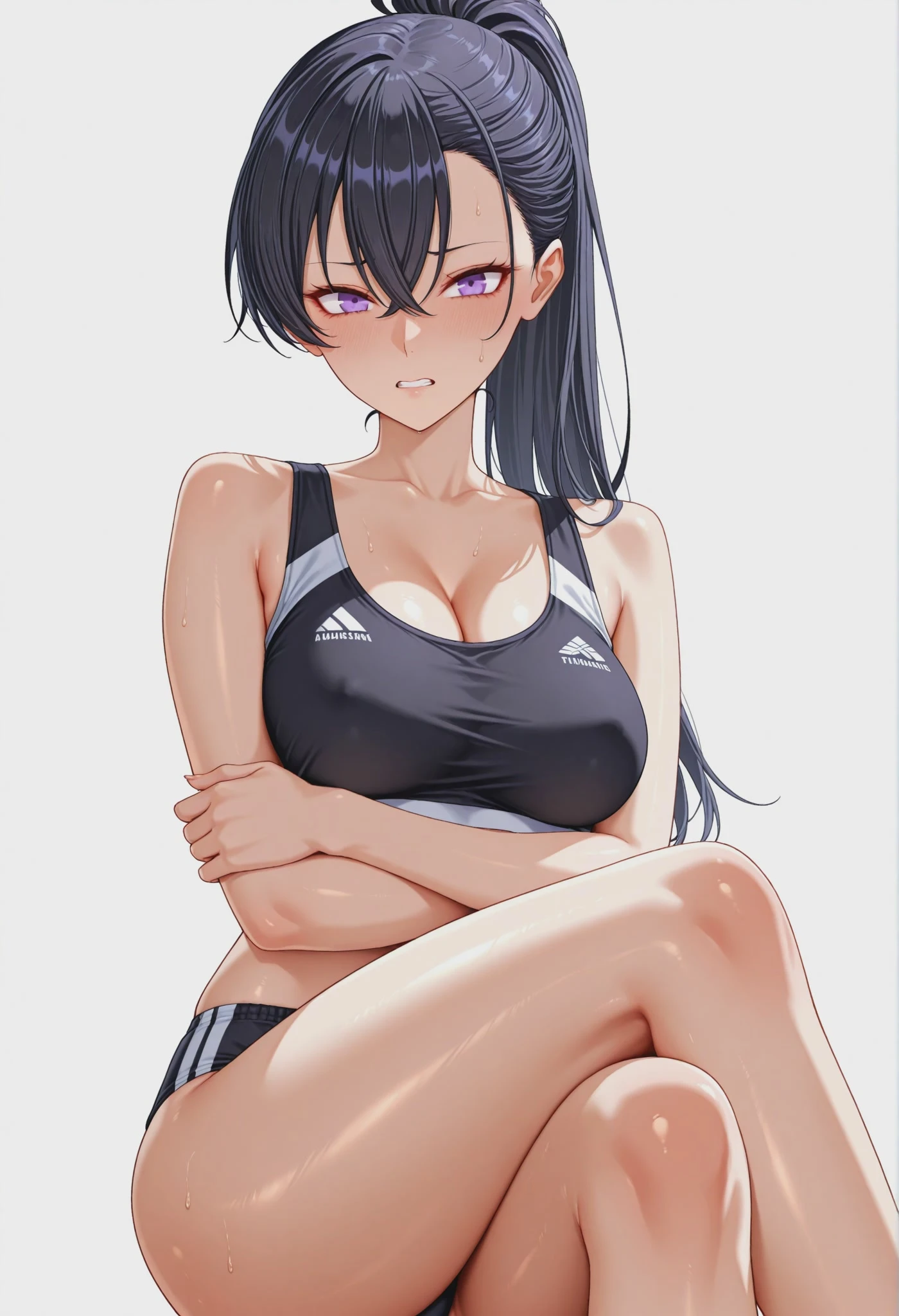 da7, hair between eyes, bangs, long hair, black hair, purple eyes,