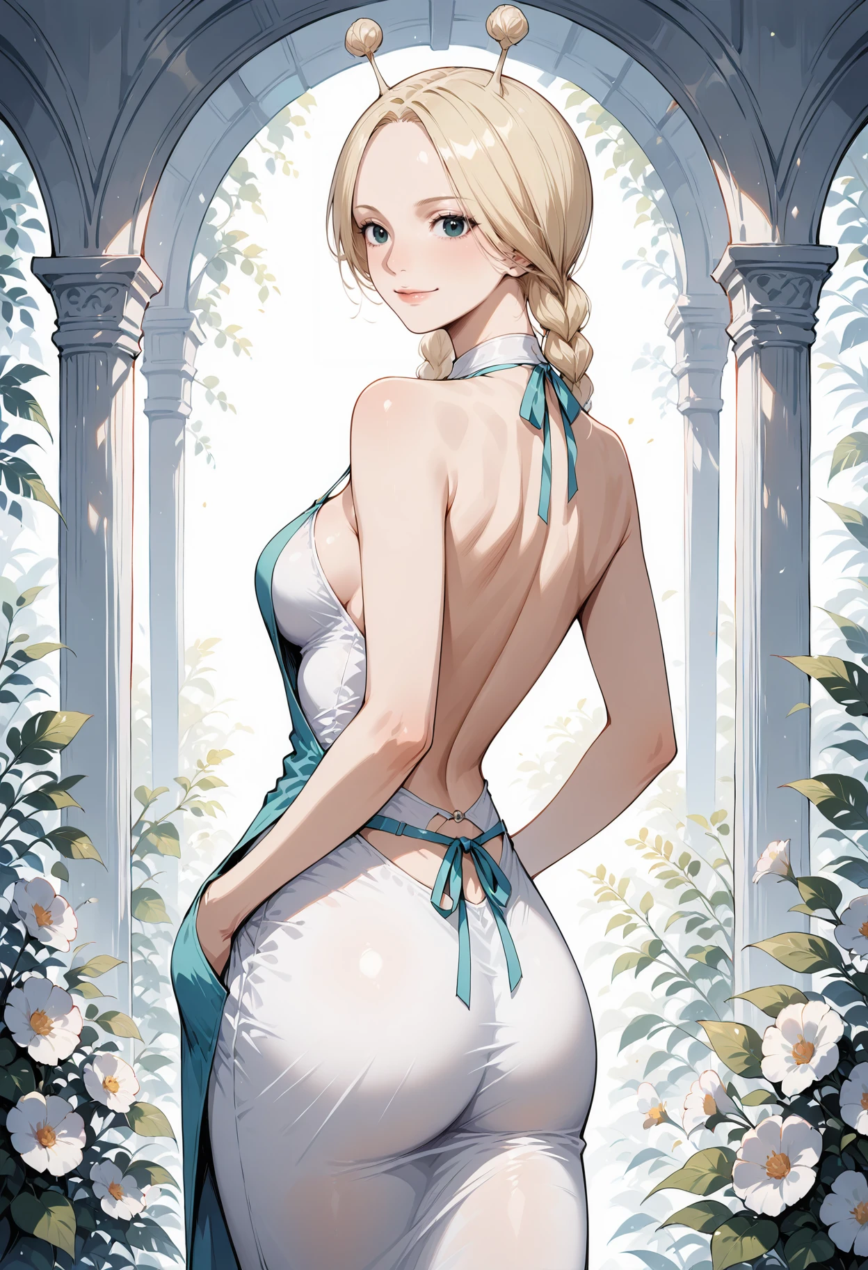 Appearance: 1girl,green eyes,black eyes,blue eyes,blonde hair,hair bun,long hair,braid,single hair bun,twintails,twin braids,antennae