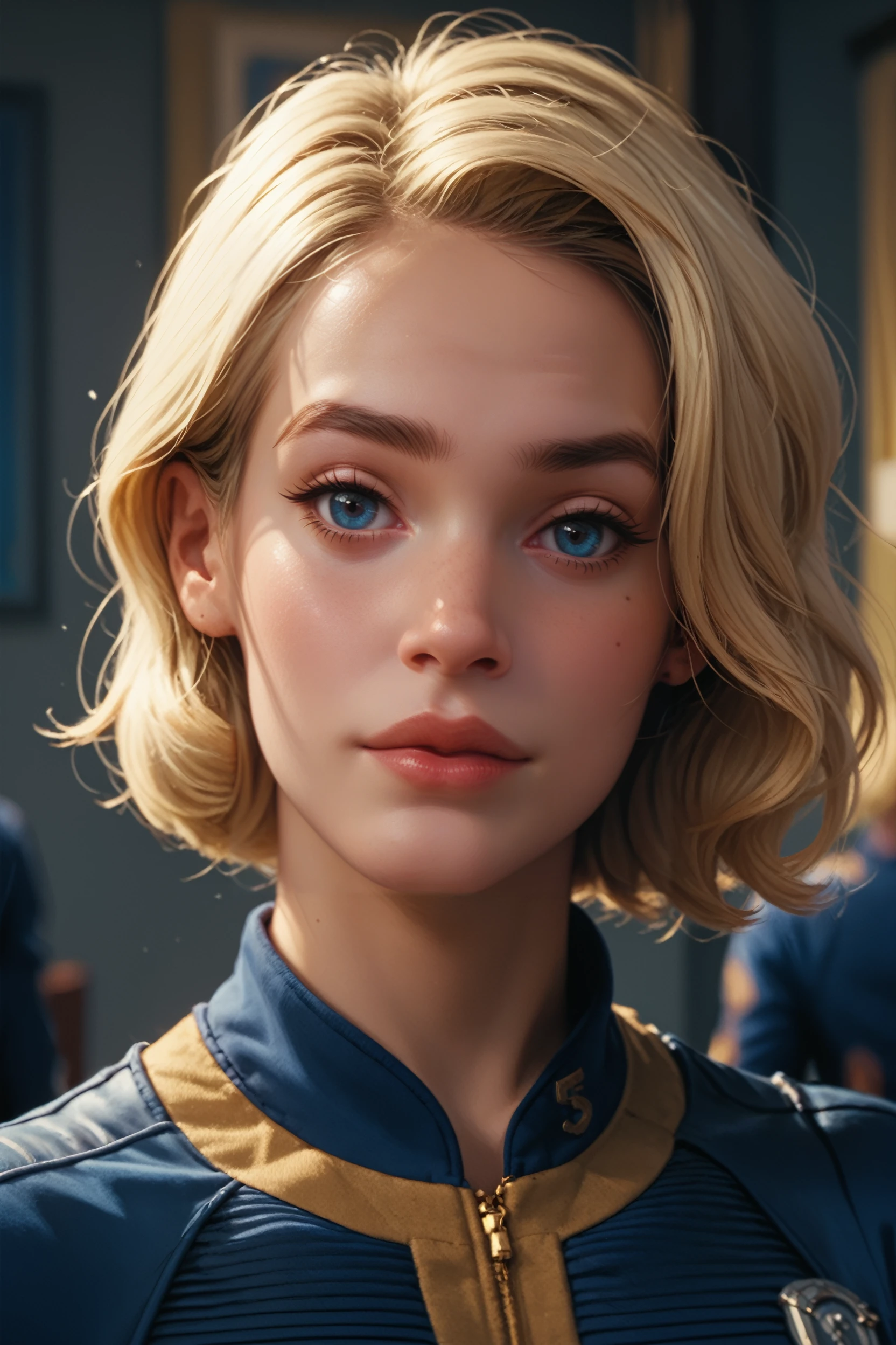 FHStephanieH, 1girl, blonde hair, blue eyes, short hair