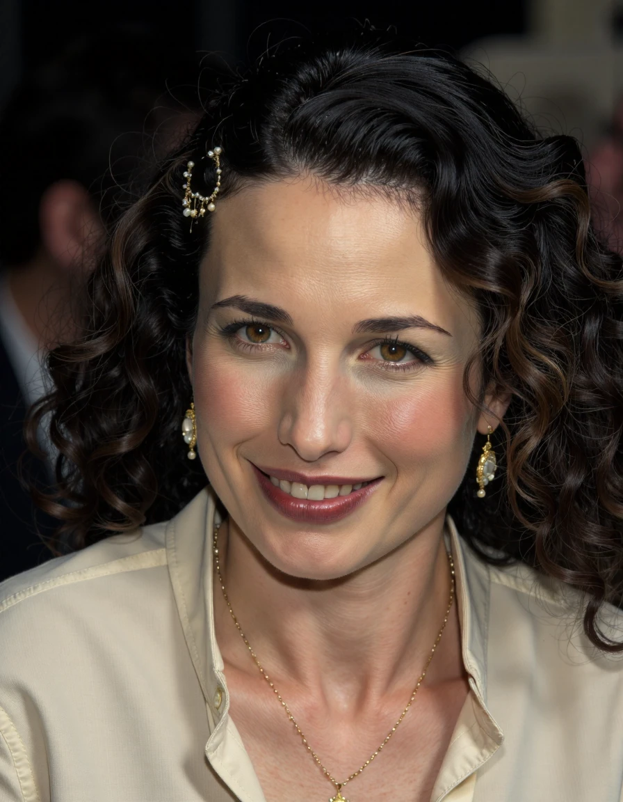 Andie MacDowell, born Rosalie Anderson MacDowell on April 21, 1958, in Gaffney, South Carolina, is an acclaimed American actress and former fashion model. She gained fame for her roles in romantic comedies and dramas, with standout performances in films like Sex, Lies, and Videotape (????), Groundhog Day (1993), and Four Weddings and a Funeral (1994). MacDowell has also modeled for Calvin Klein and has been a spokeswoman for L'Oréal since 1986.