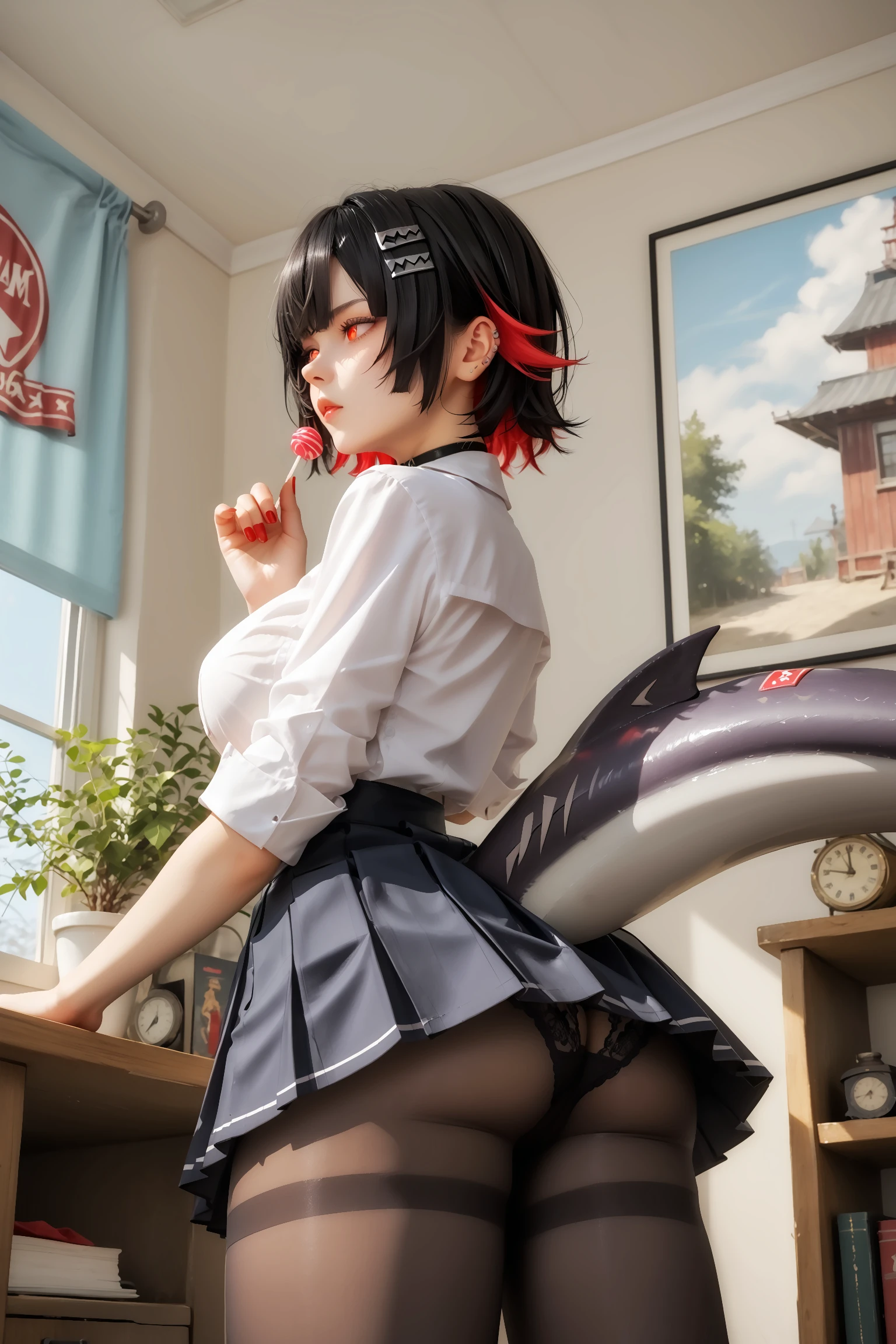 Optional Prompts : lollipop, shark tail, panties under pantyhose