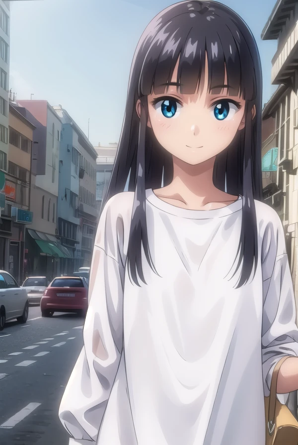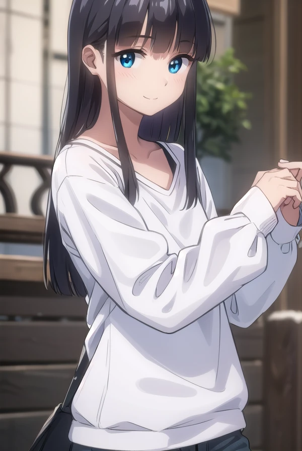 coco, long hair, blue eyes, black hair, bangs, blunt bangs, sidelocks,