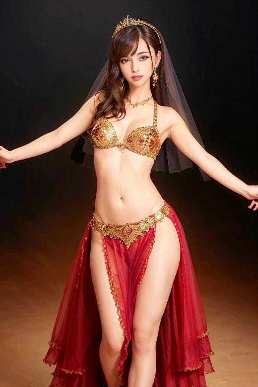 Keys: wearing belly dance dress, dancing