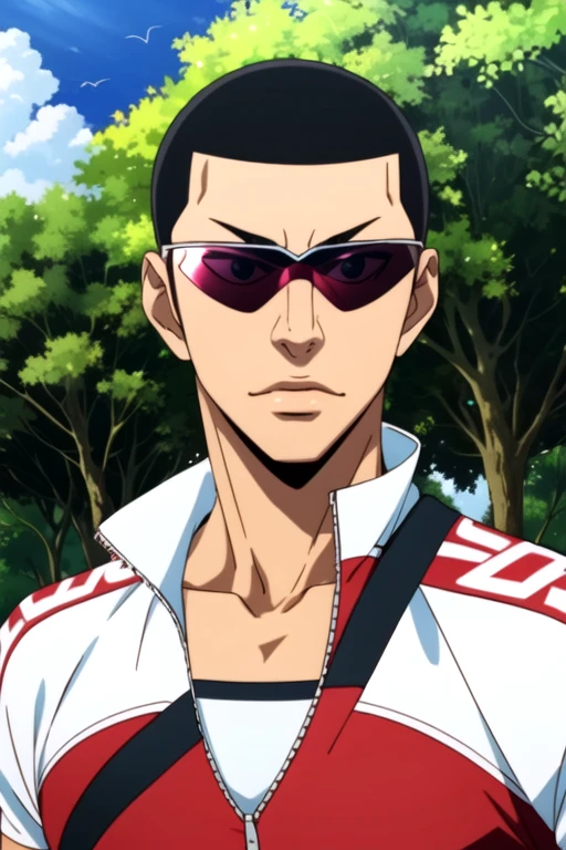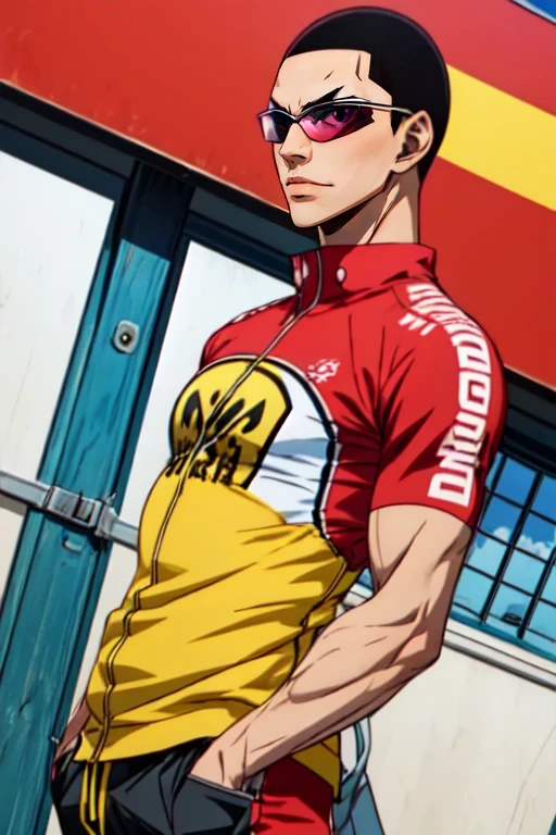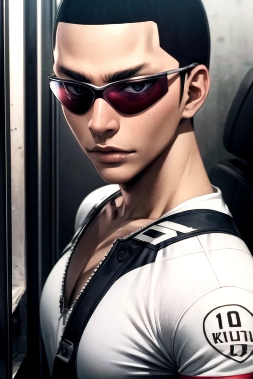 shingo_kinjou, black hair, black eyes, buzz cut, sunglasses, glasses
