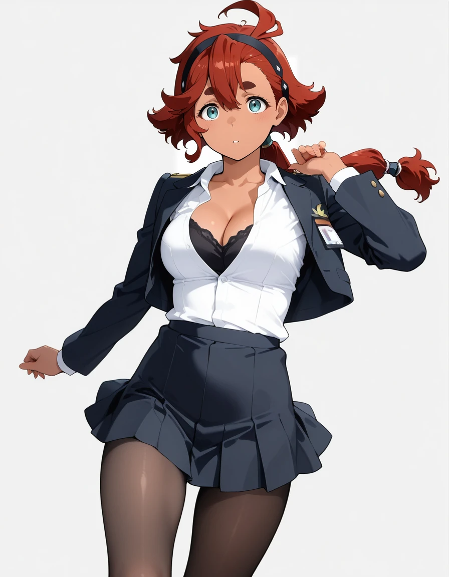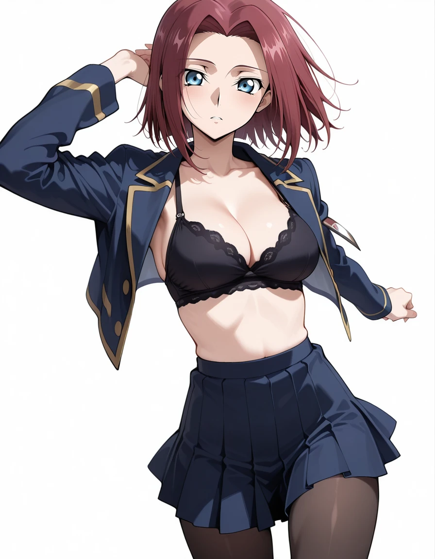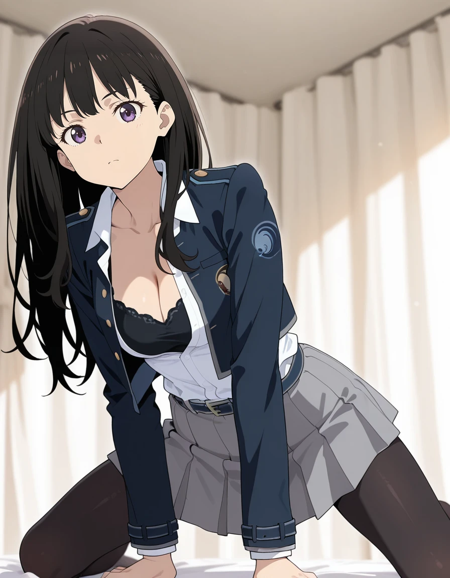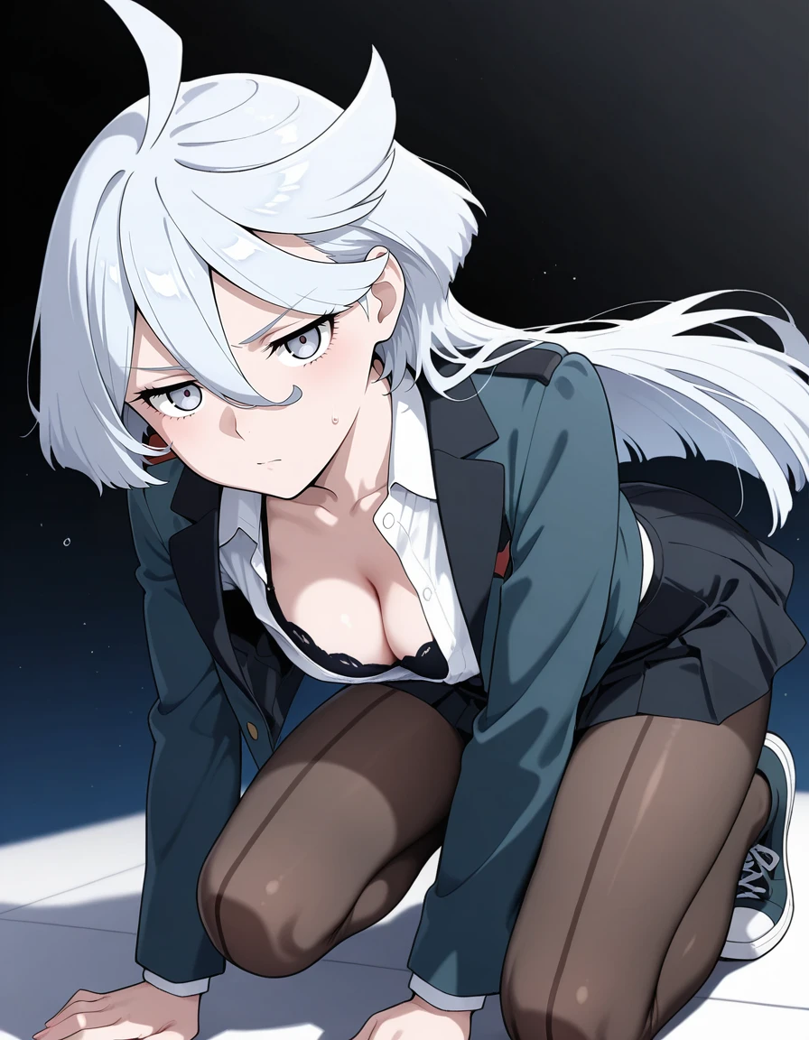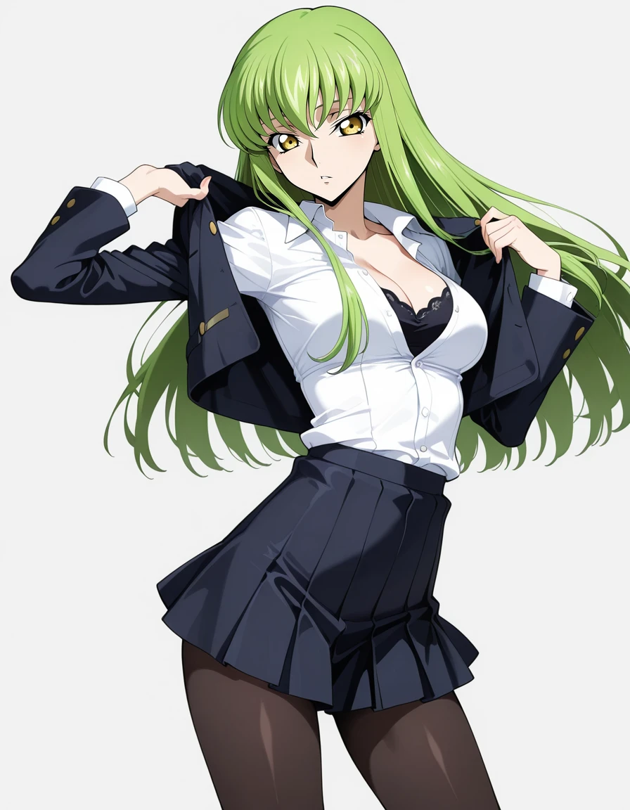 mai_bj_school_uniform,black_jacket,white_shirt,black_bra,skirt,black_pantyhose,id_card