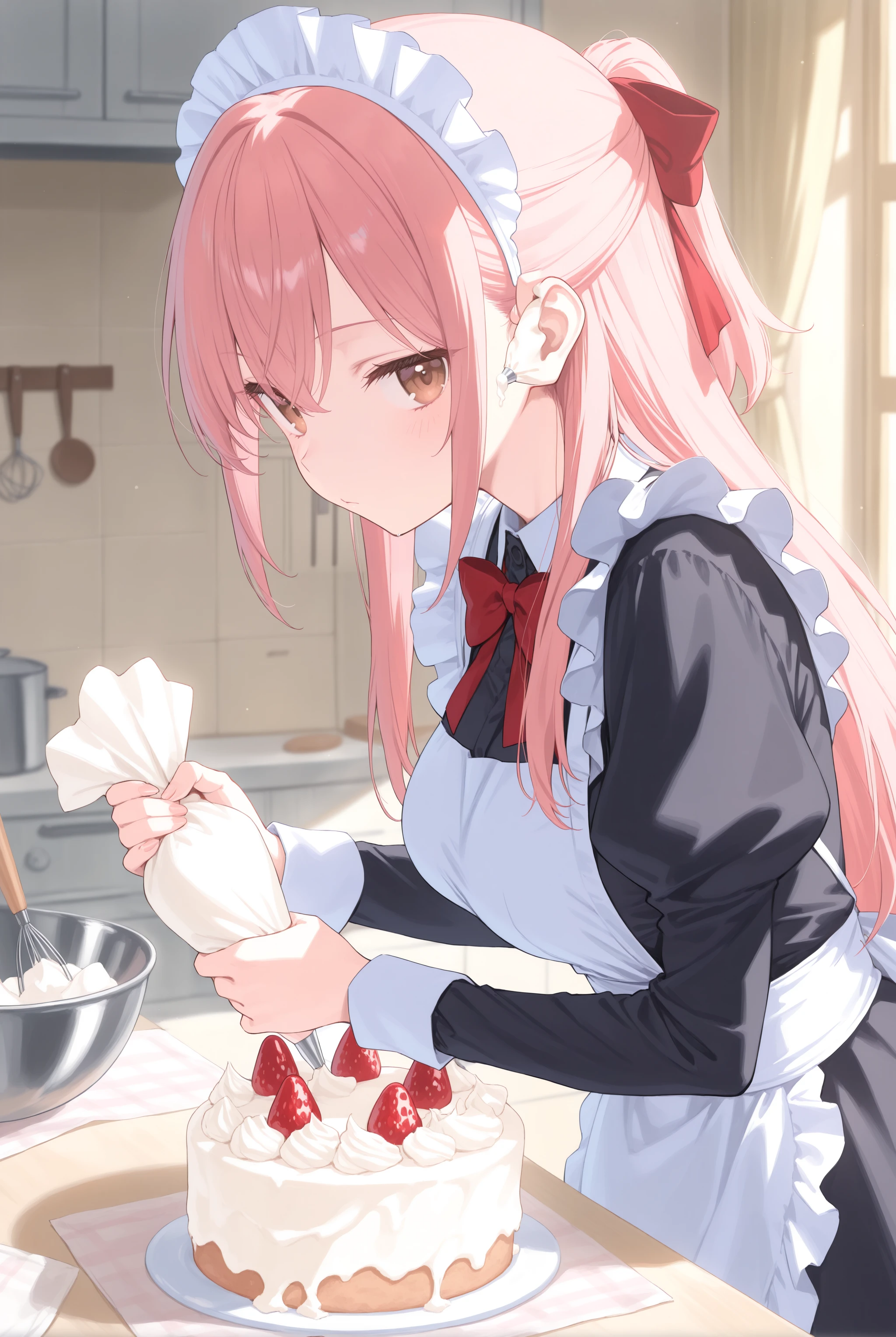 This LoRA is designed to make the subject hold a pastry bag with both hands, as used when baking cakes.