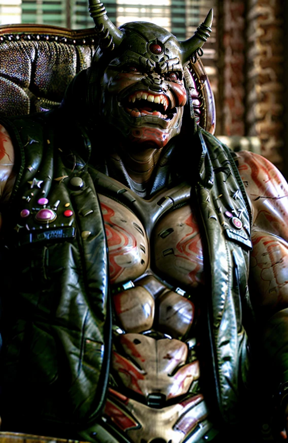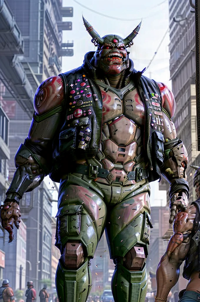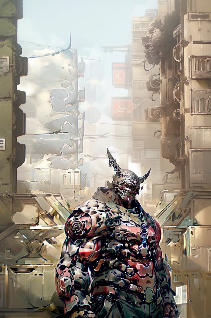 Simple prompt, something like 'sokaku_twohorns, muscular 3 eyed cyborg wearing a jacket' will get you off to a good start.