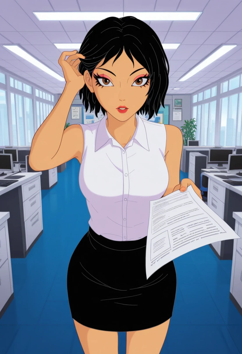 black hair, short hair,