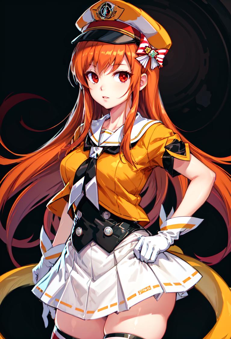 Copula clothes: copula, white gloves, white skirt, yellow skirt, hat, black thighhighs, sailor collar