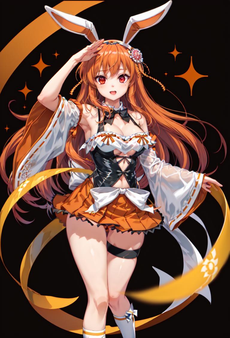 Candy bunny (figurine) clothes: candy bunny, hair ornament, wide sleeves, bunny ears, pleated skirt, orange skirt, hairband, thigh strap, white socks