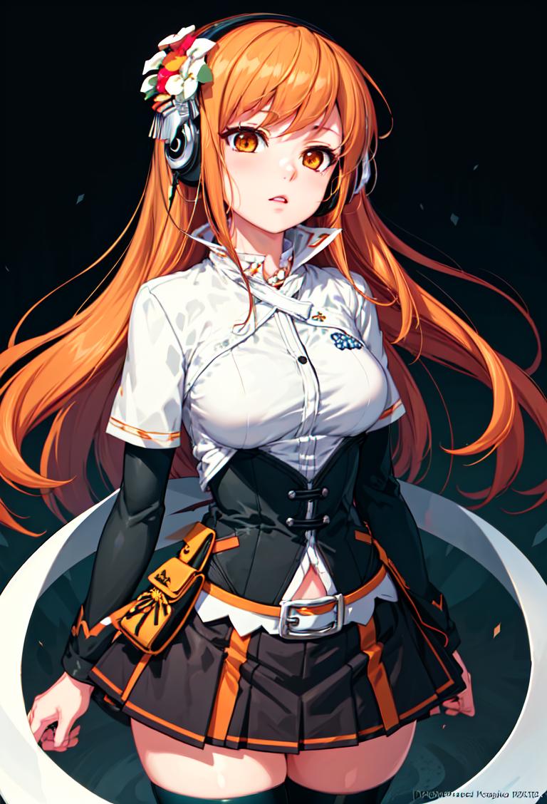 Clothes (IIDX 9th Style): 9th style, skirt, blue thighhighs, hair ornament, white shirt, headphones, belt, hair flower