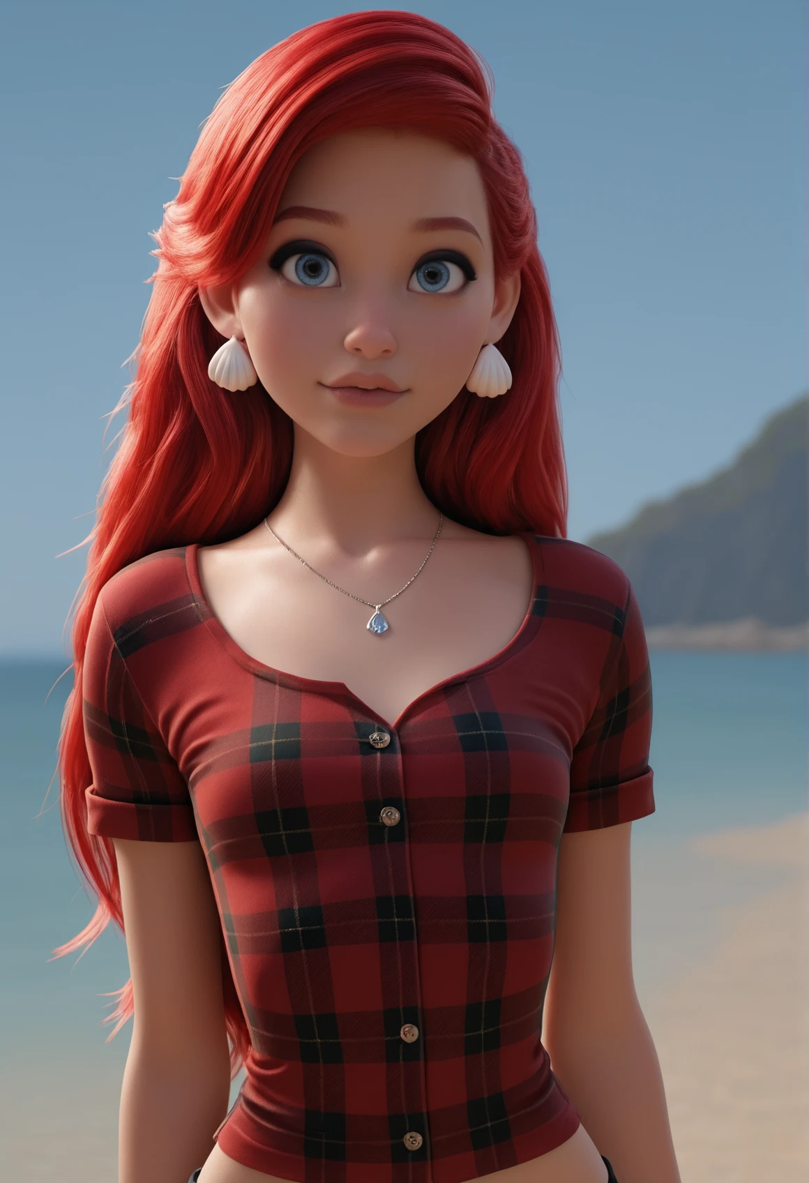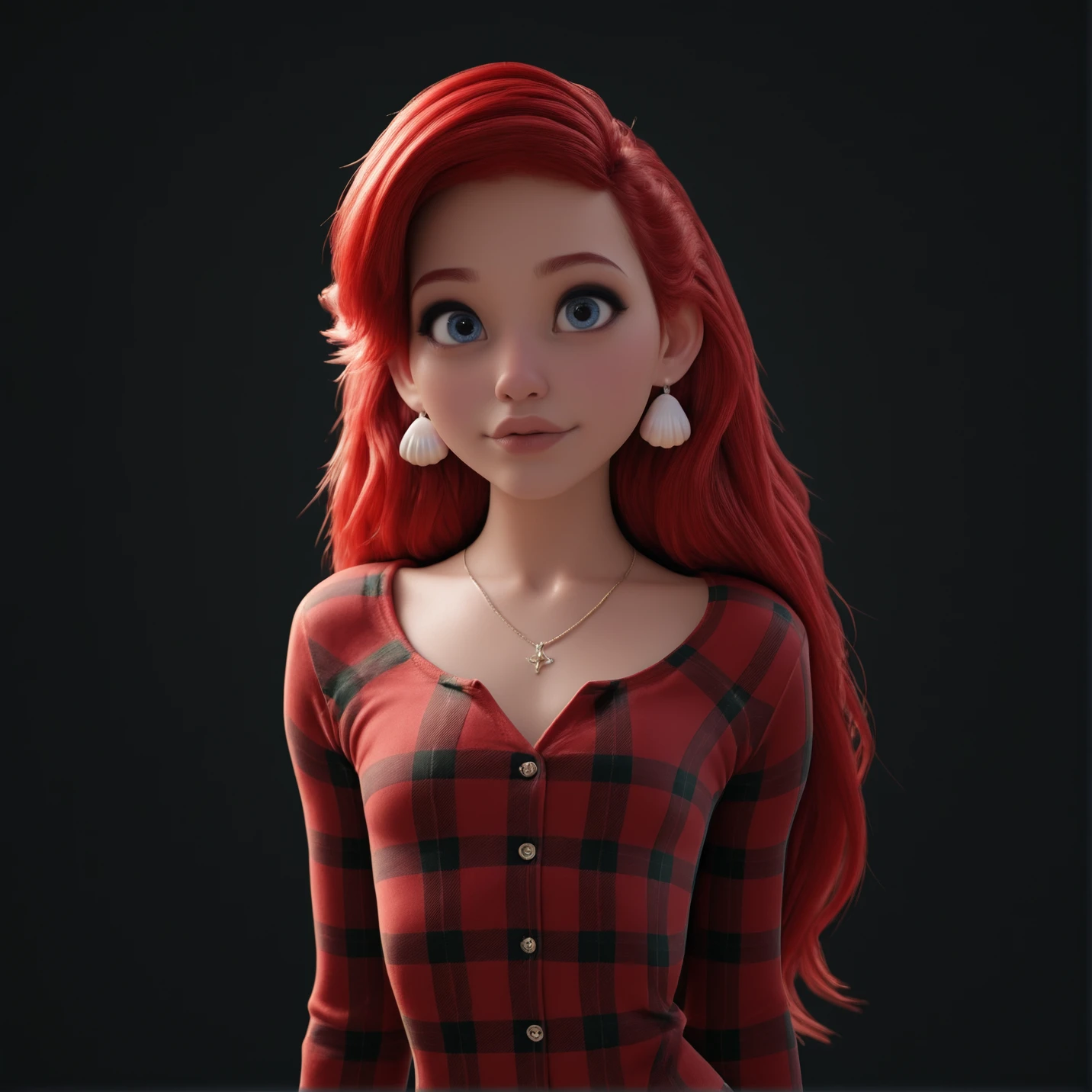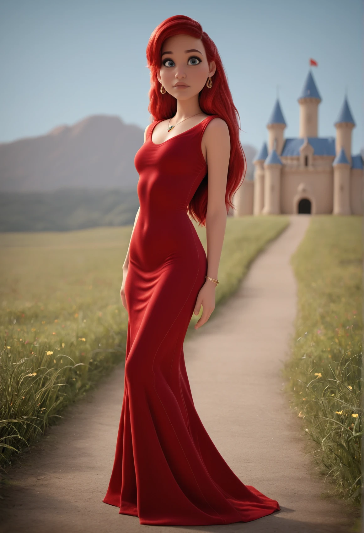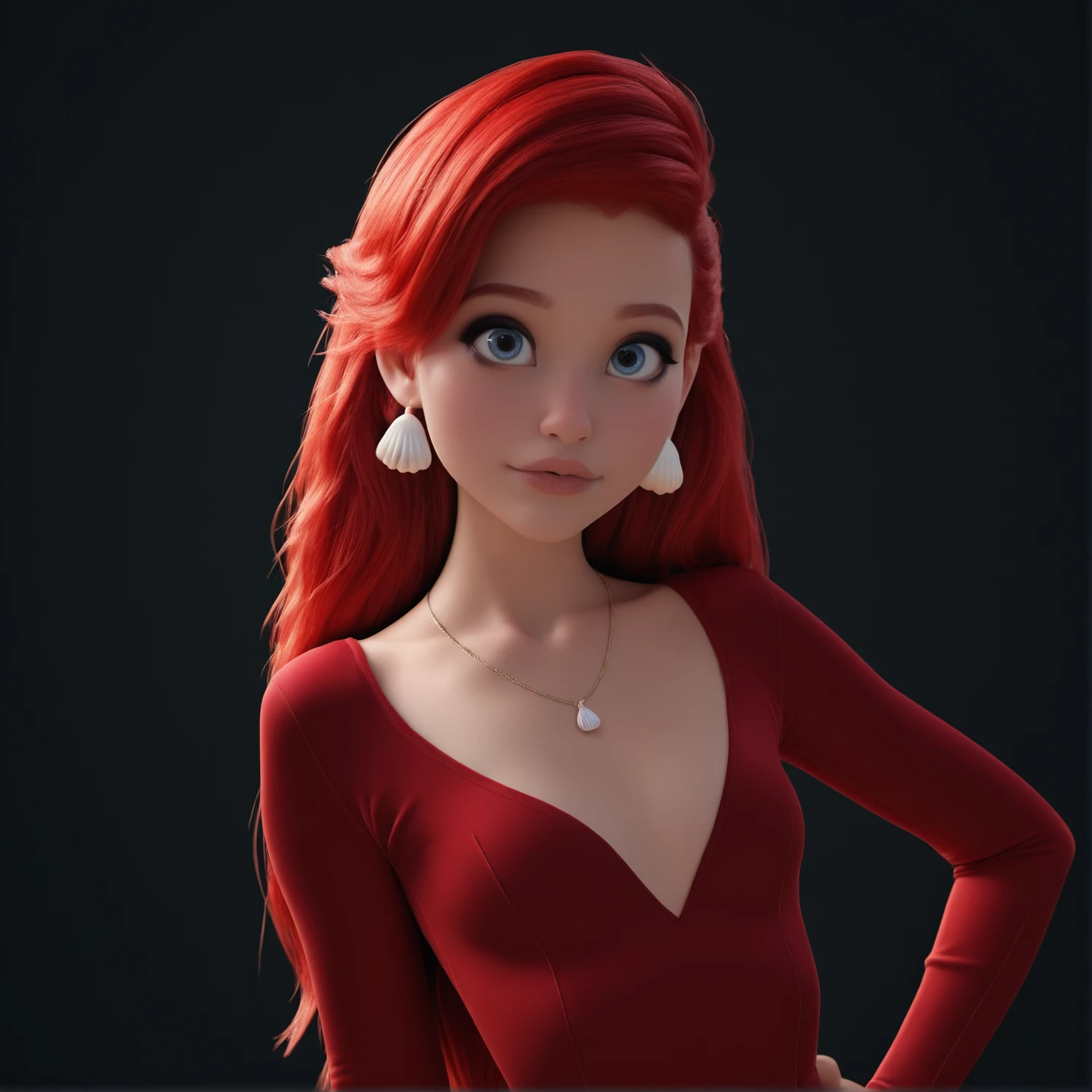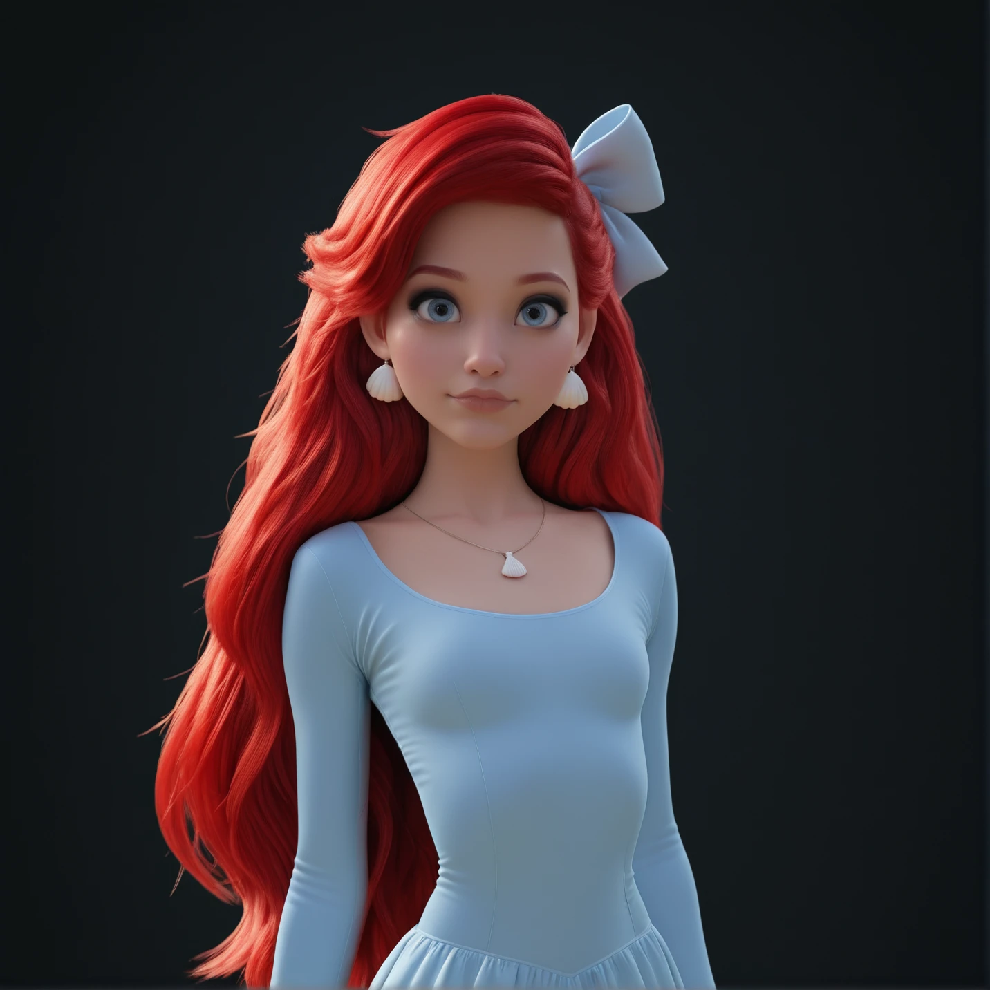 4rielCute, blue eyes, big eyes, red hair, long hair