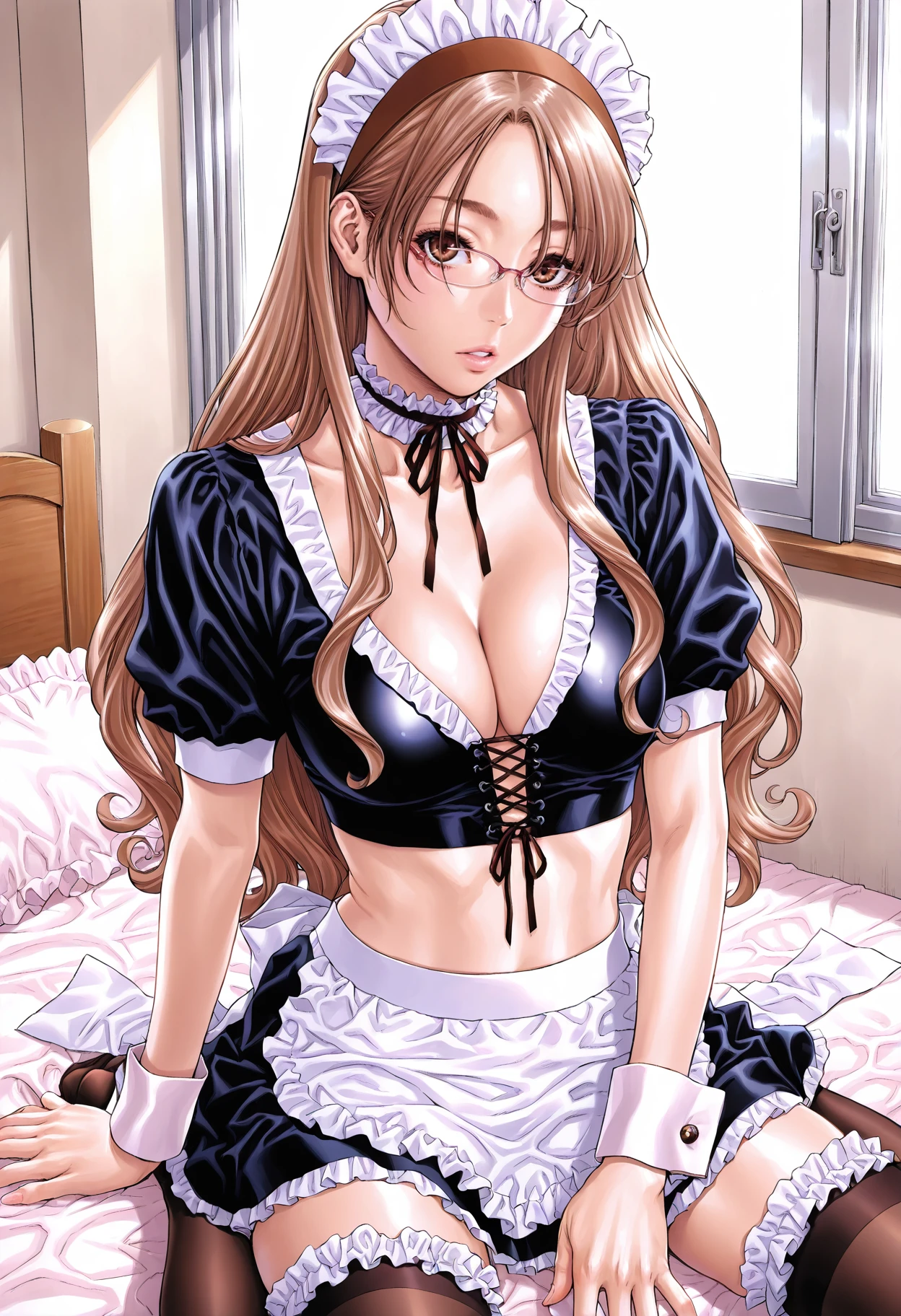 Alternative Outfit: breasts,maid,maid headdress,thighhighs,apron,wrist cuffs,frills,maid apron,short sleeves,large breasts,midriff,skirt,medium breasts,waist apron,puffy sleeves,alternate costume,crop top,very long hair,puffy short sleeves,ribbon,swimsuit,choker,bikini,enmaided,bangs,frilled choker,frilled thighhighs