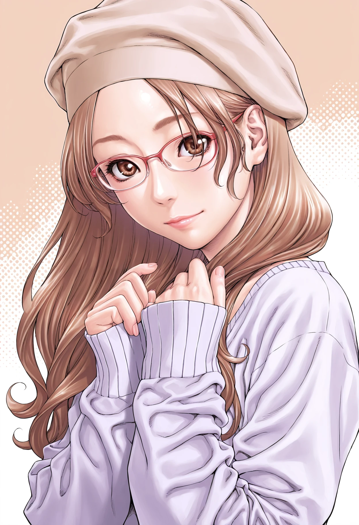 Appearance (with glasses): 1girl,brown eyes,brown hair,long hair,glasses,red-framed eyewear