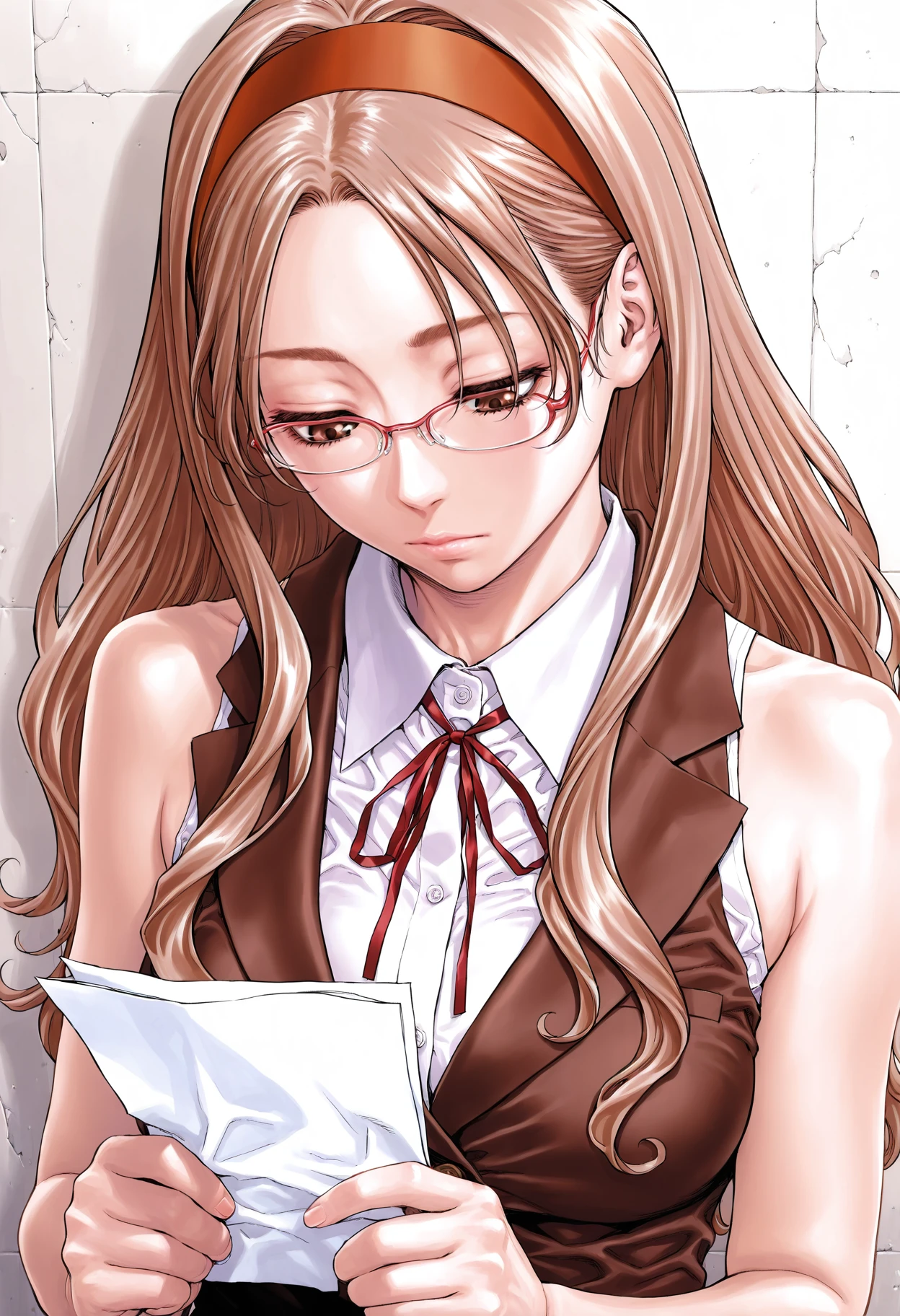 Appearance: 1girl,brown eyes,brown hair,long hair,makeup
