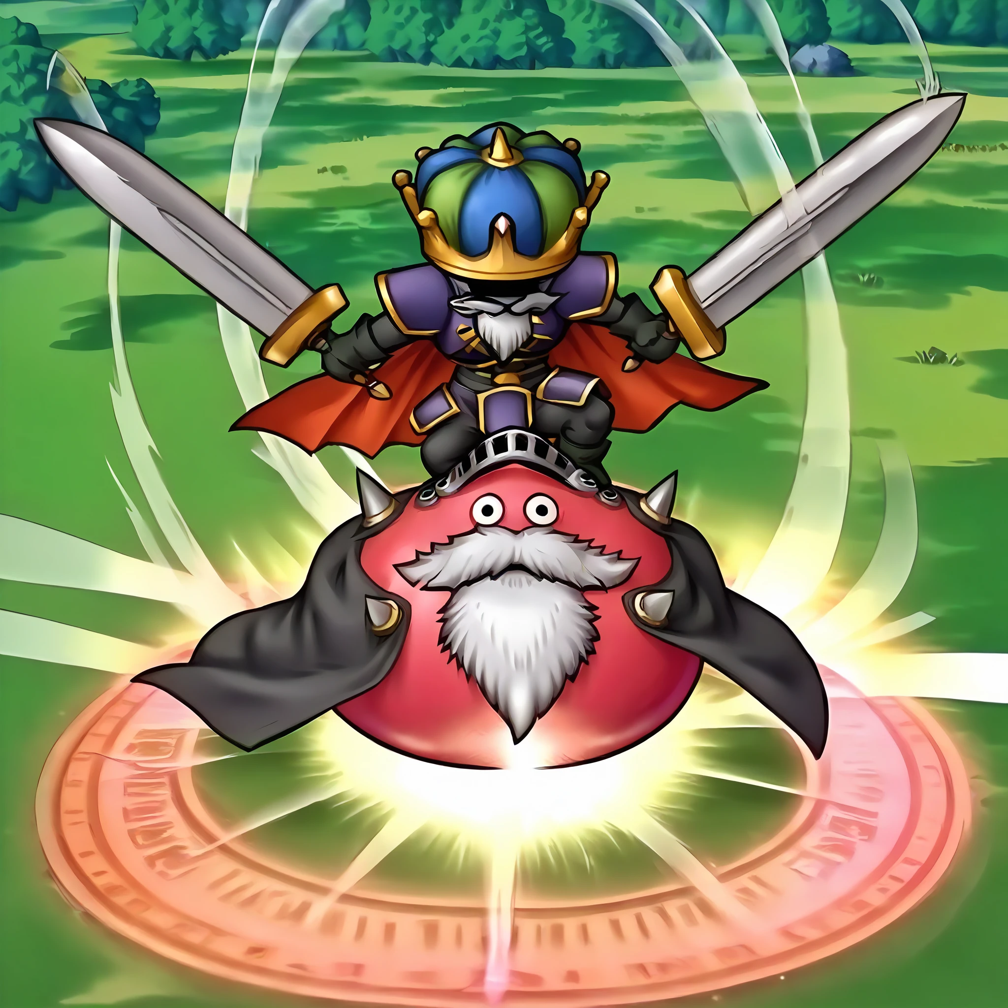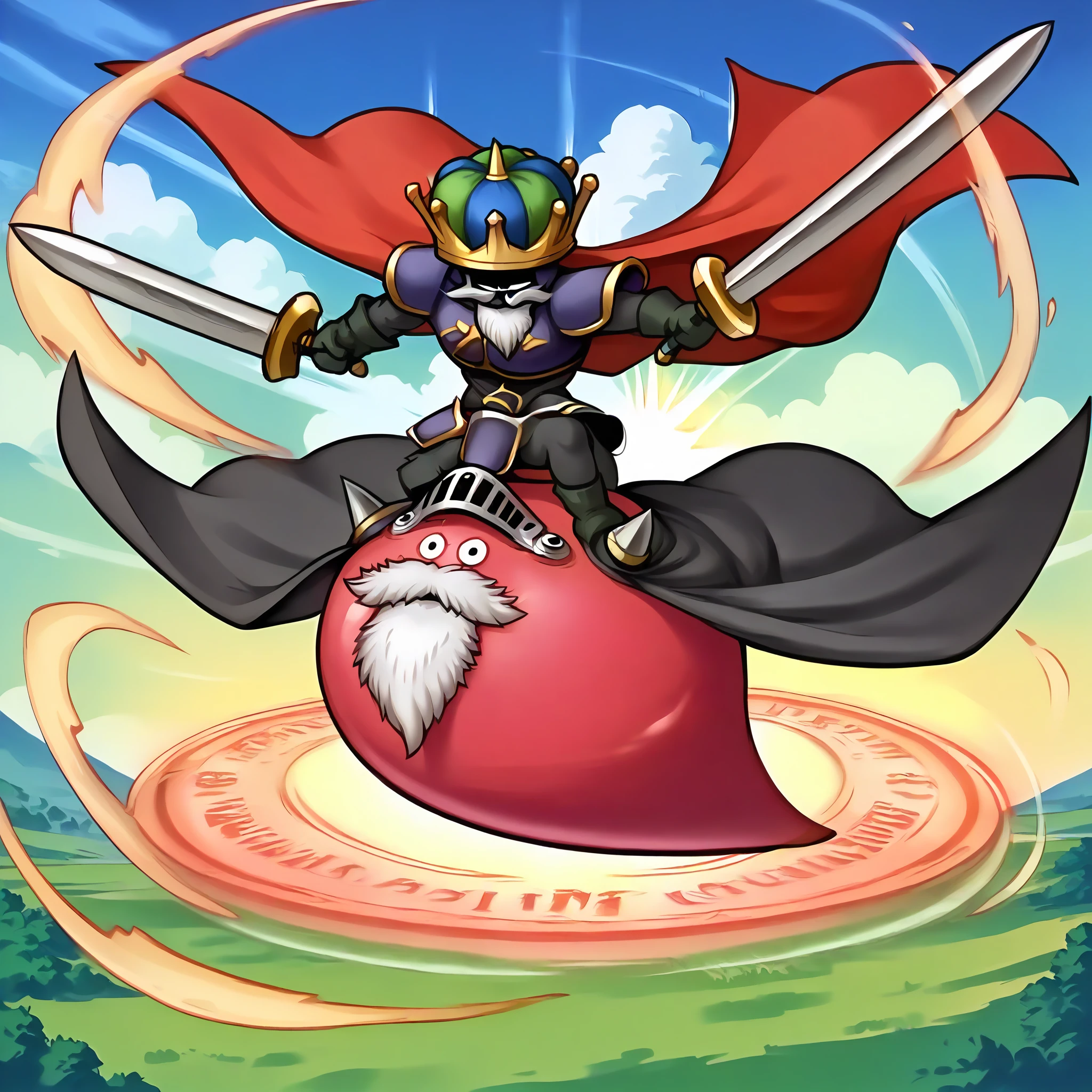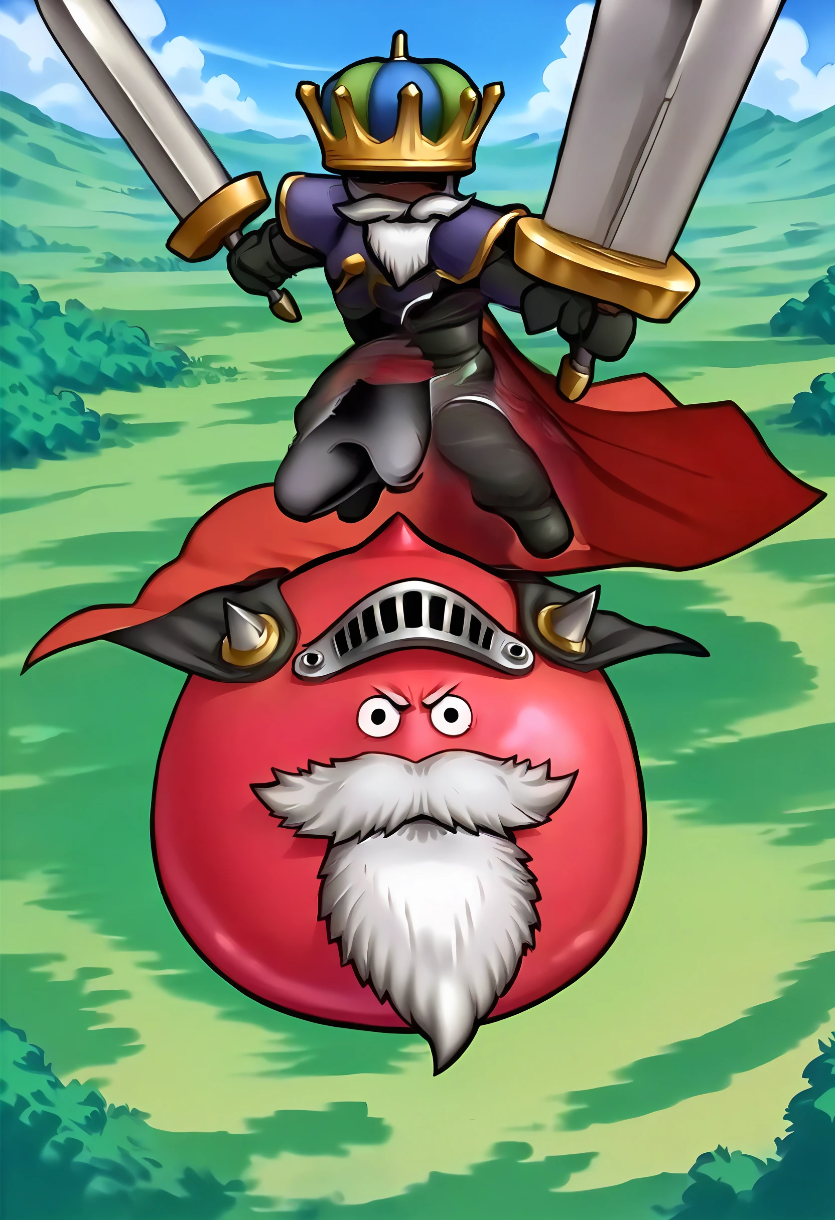 shogum,slime (dragon quest),armor,beard,mustache,cape,crown,no humans