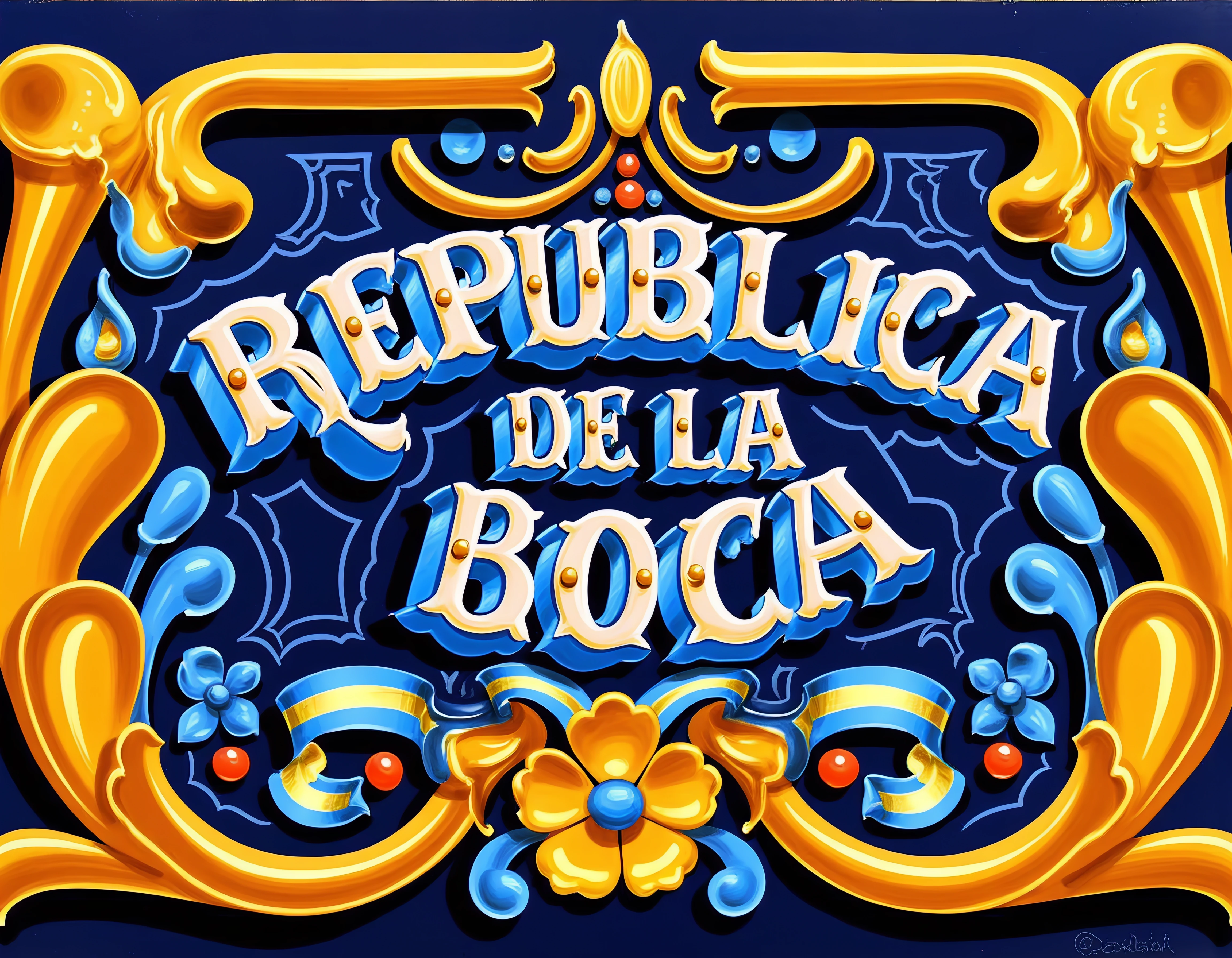 Fileteado porteño is a traditional decorative art style from Buenos Aires and Rio de La Plata, known for its ornate flourishes, vibrant colors, and stylized lettering.