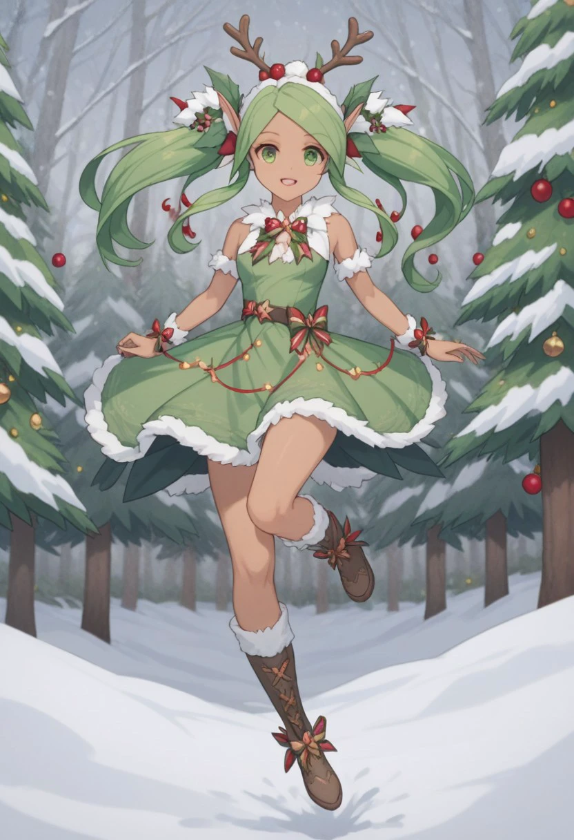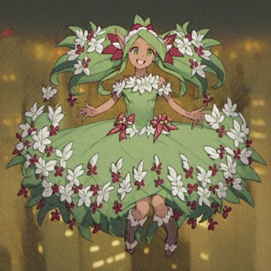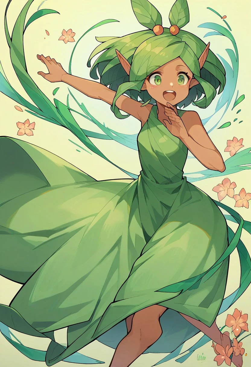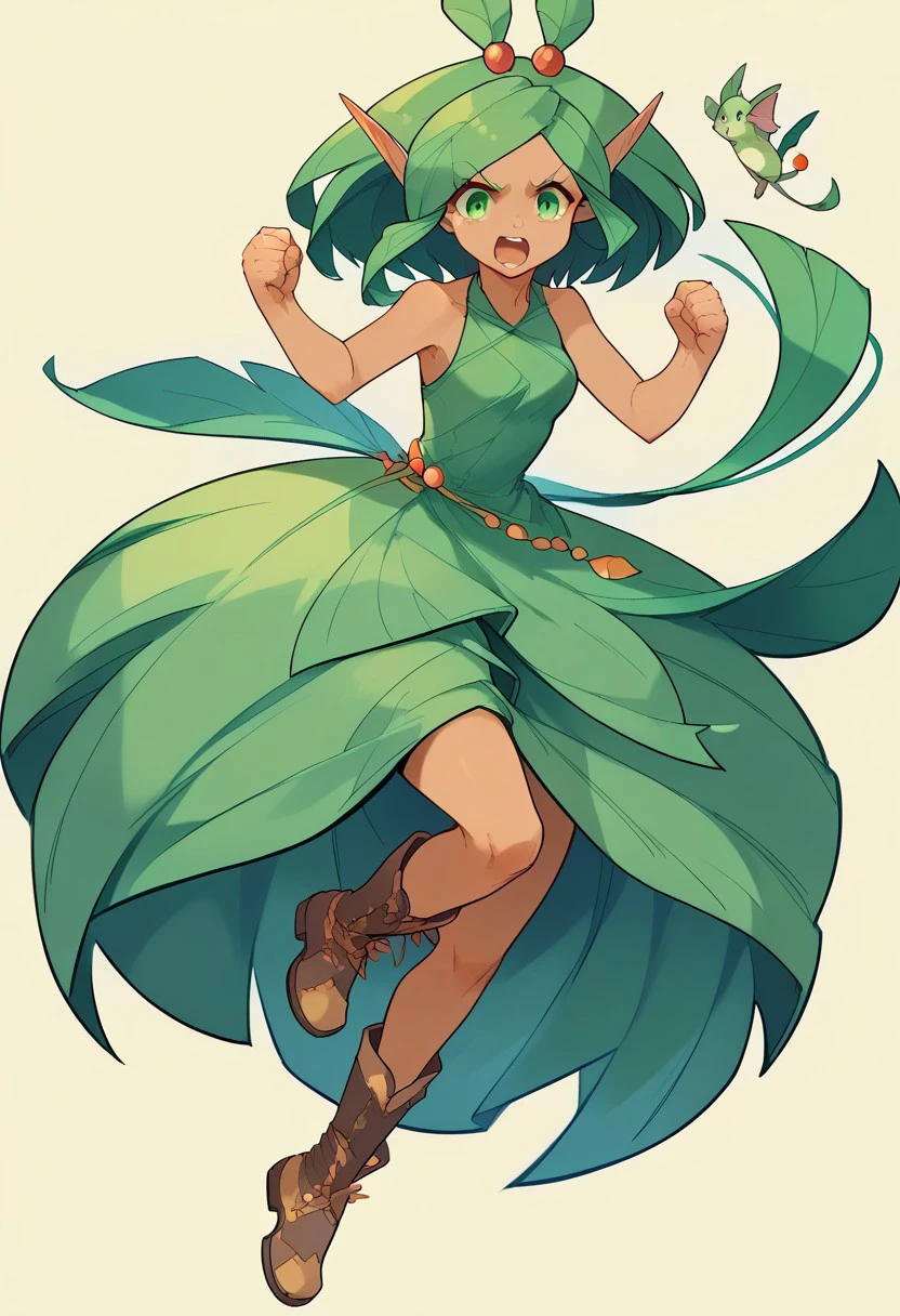 Normal (leaf dress) outfit: leaf dress, boots, hair ornament