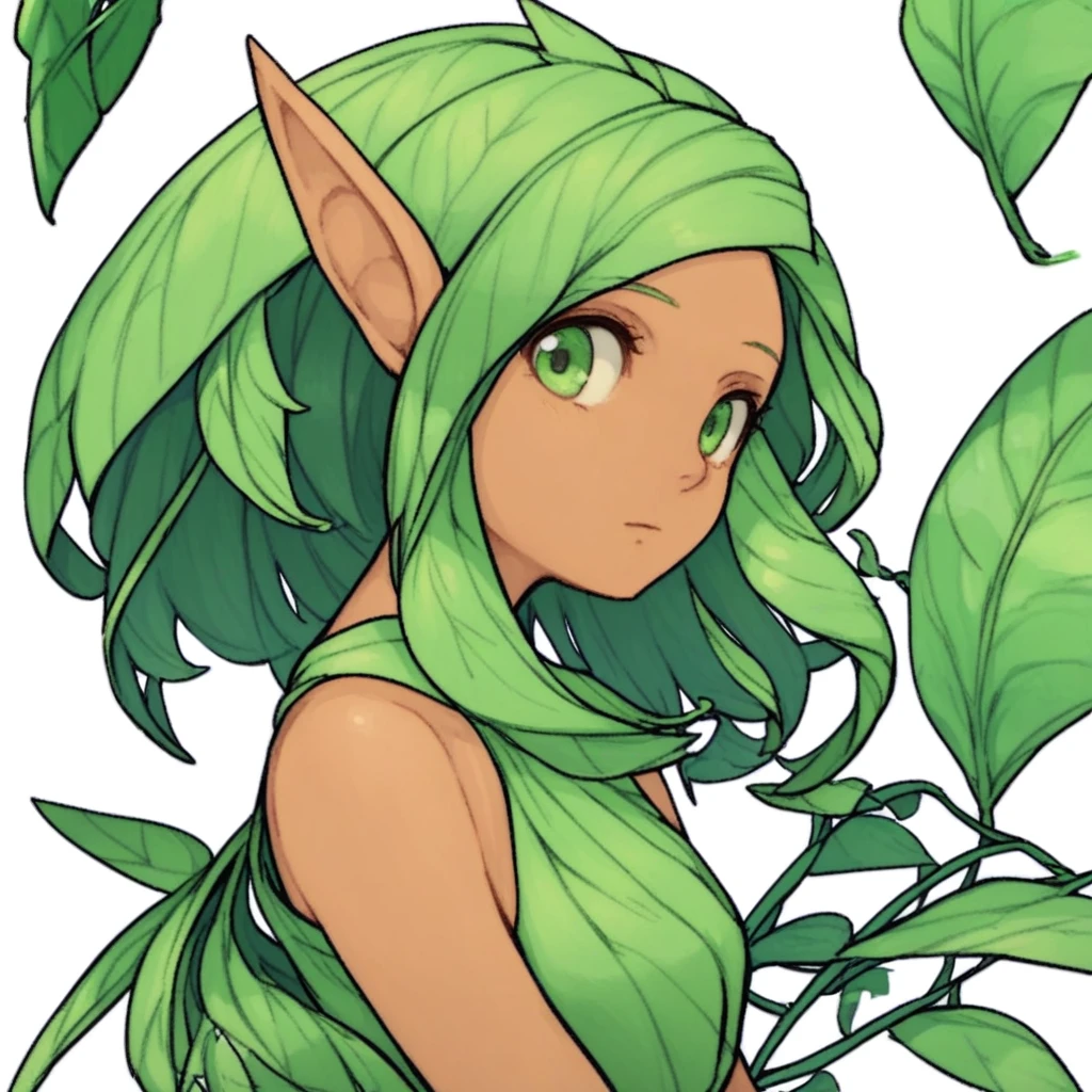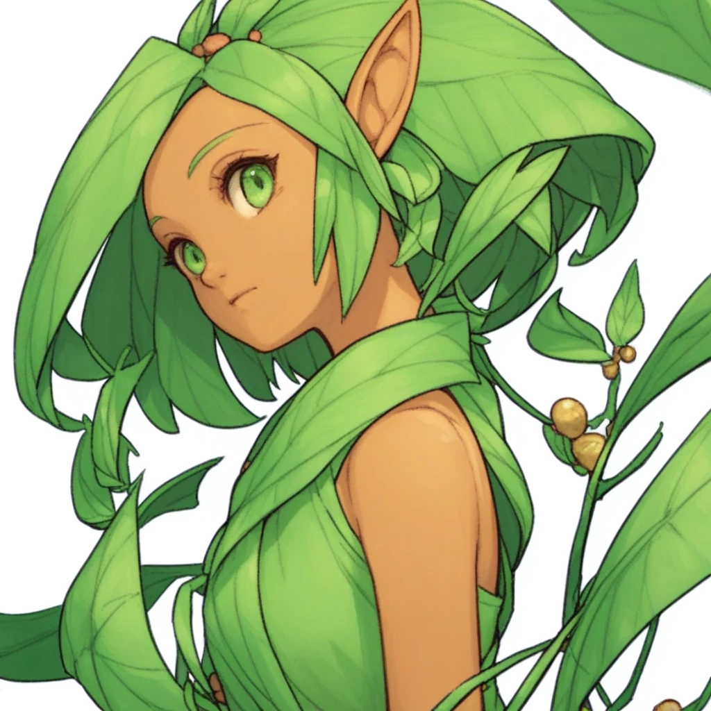 challua_wf, green eyes, green hair, tan skin, pointy ears