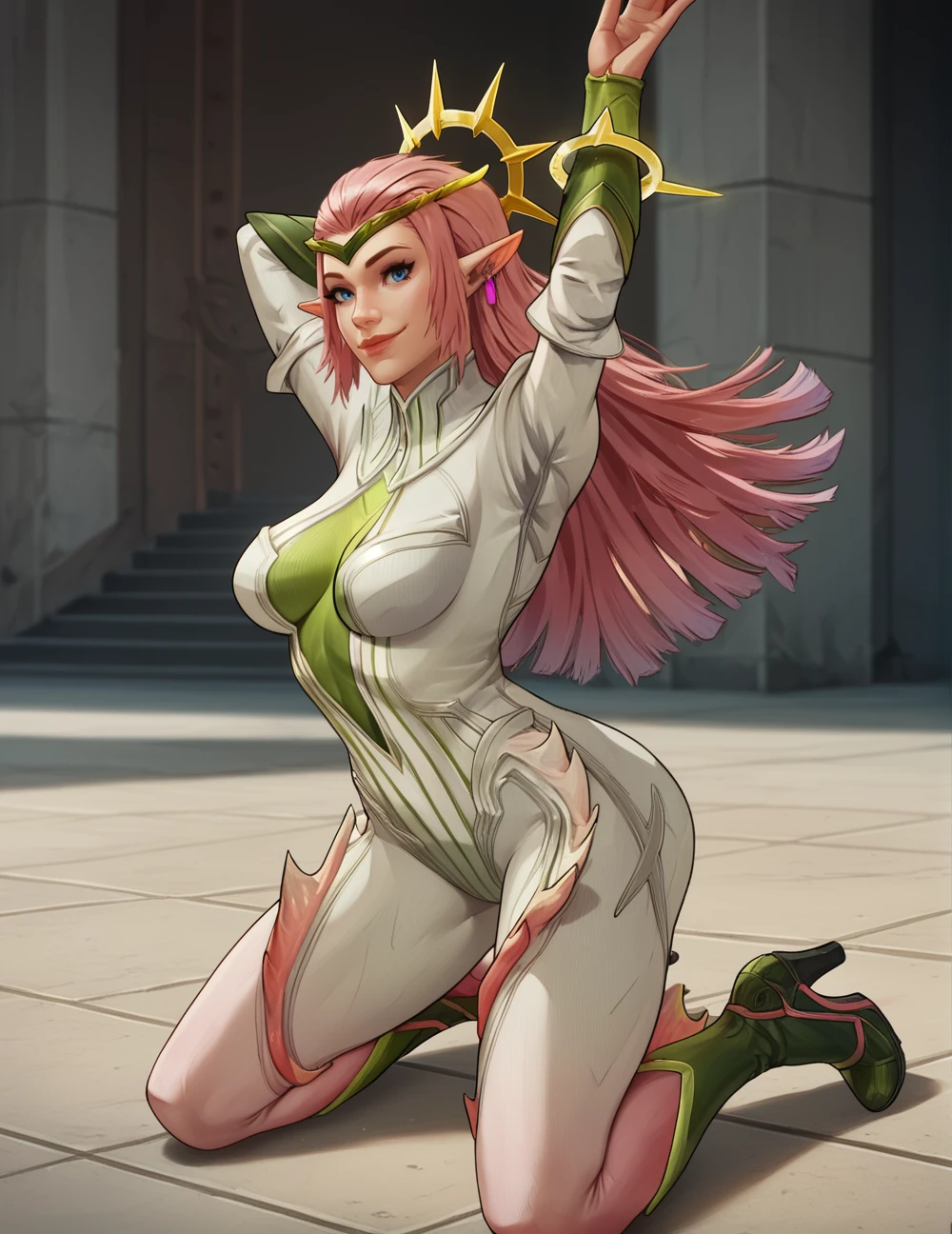 Model trained on images from hero gallery (prompts "simple background, green background") and during match replay on Hell's Heaven map (simply put "simple background" in negative and don't describe background/scene to achieve).