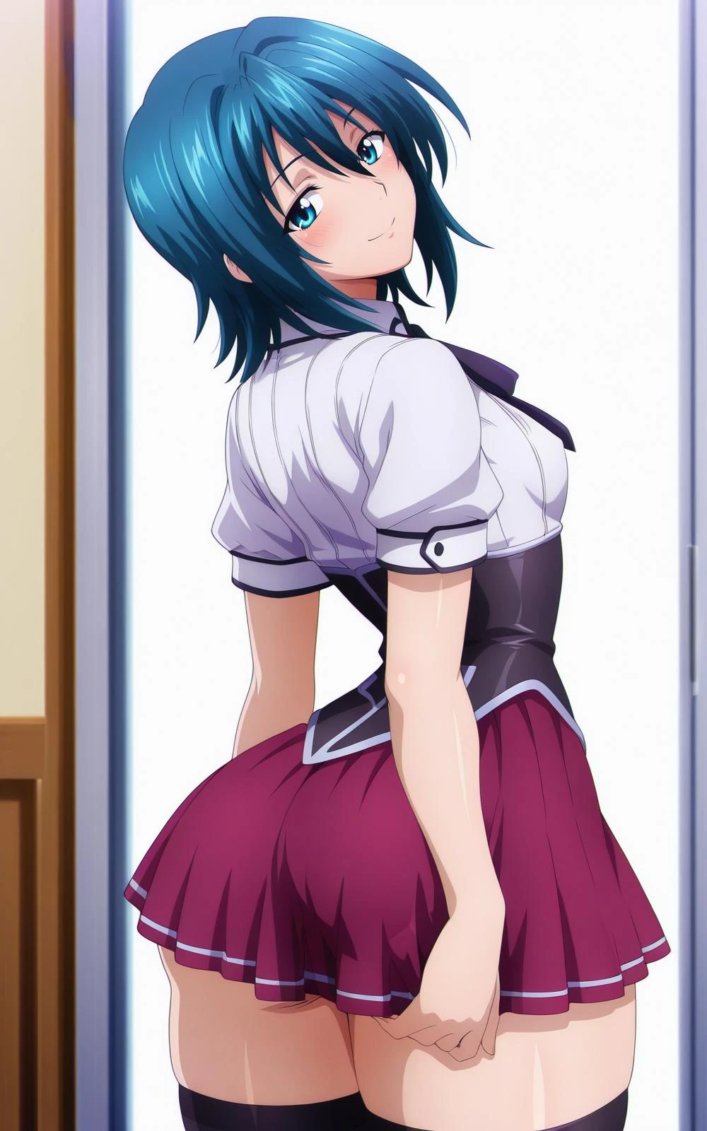 thighhighs,kuoh academy school uniform,pleated skirt,corset,black corset,white shirt,neck ribbon,short sleeves,