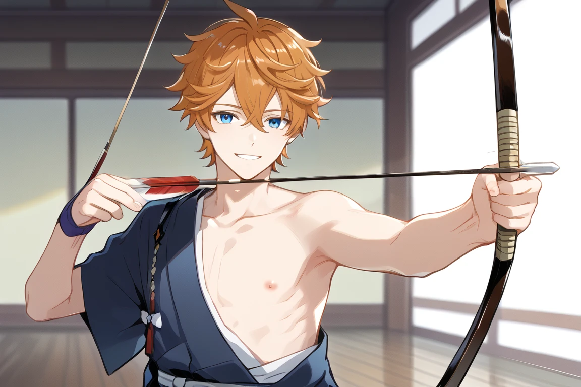 Trigger words: japanese clothes,bow,bow (weapon),archery,kyuudou,hakama,kimono,muneate