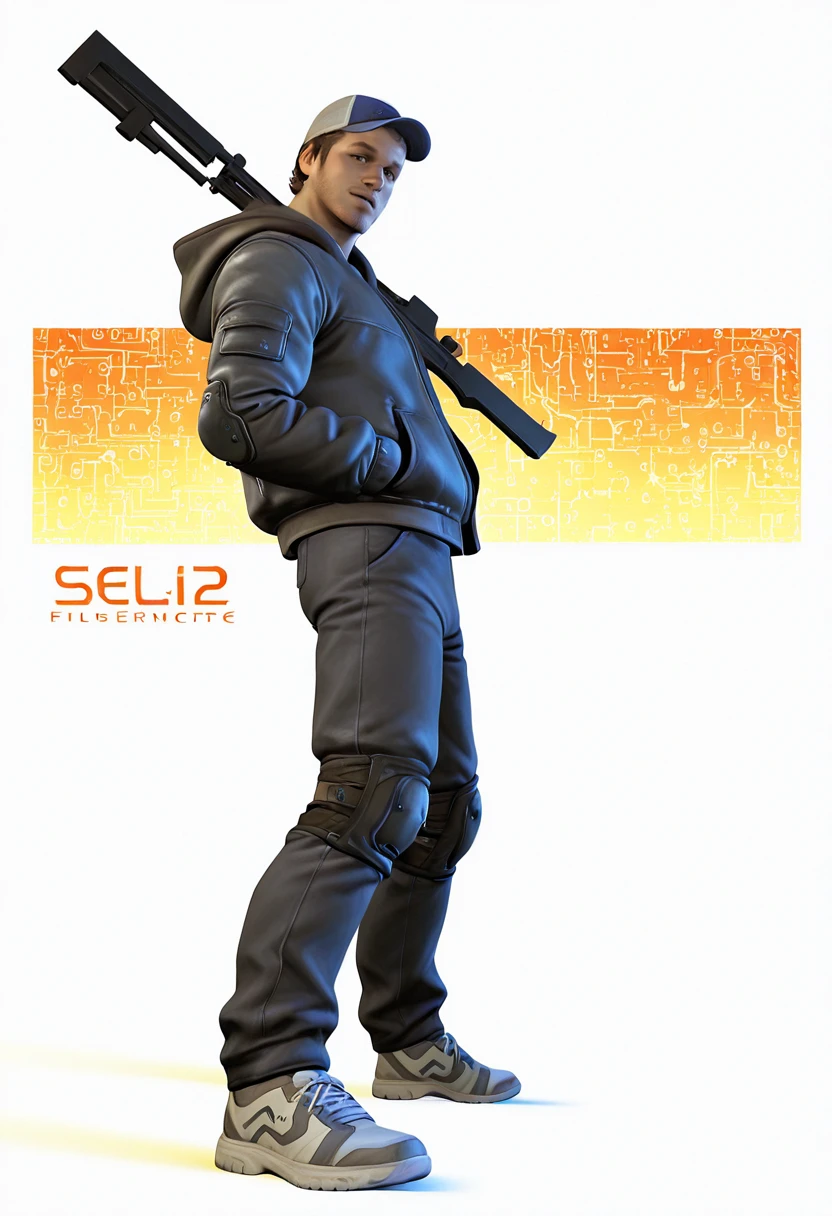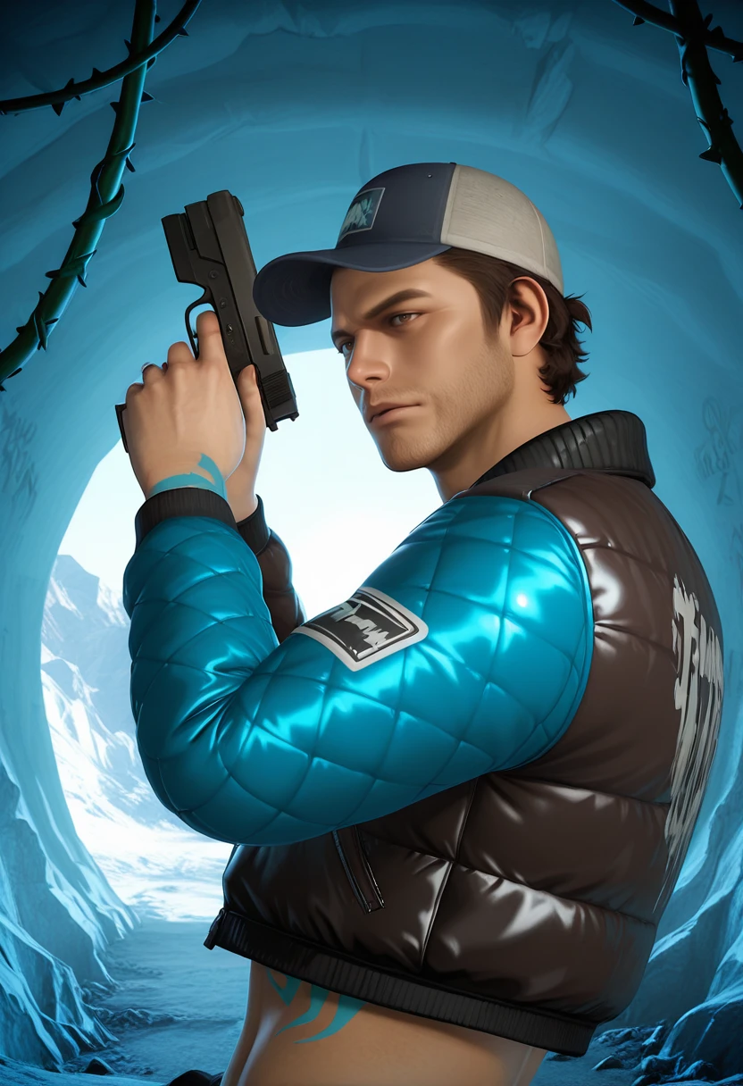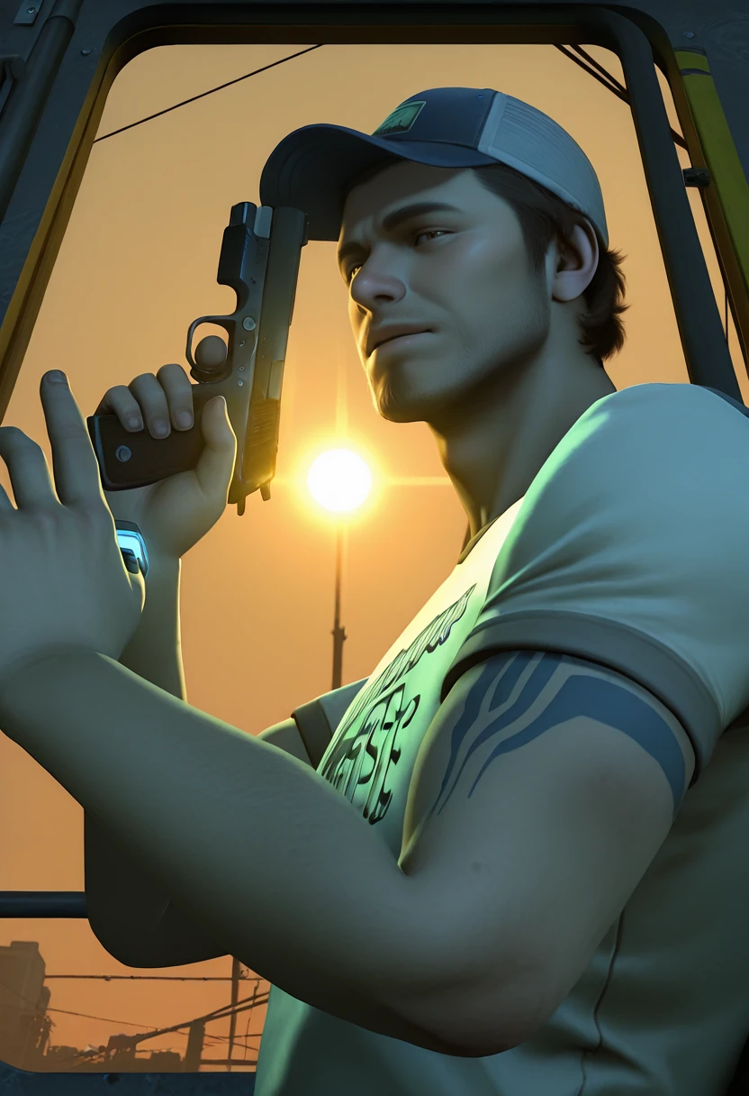 Ellis_L4D2, 3D_style, realistic, 1boy, male focus, facial hair, baseball cap, hat, , solo, stubble,