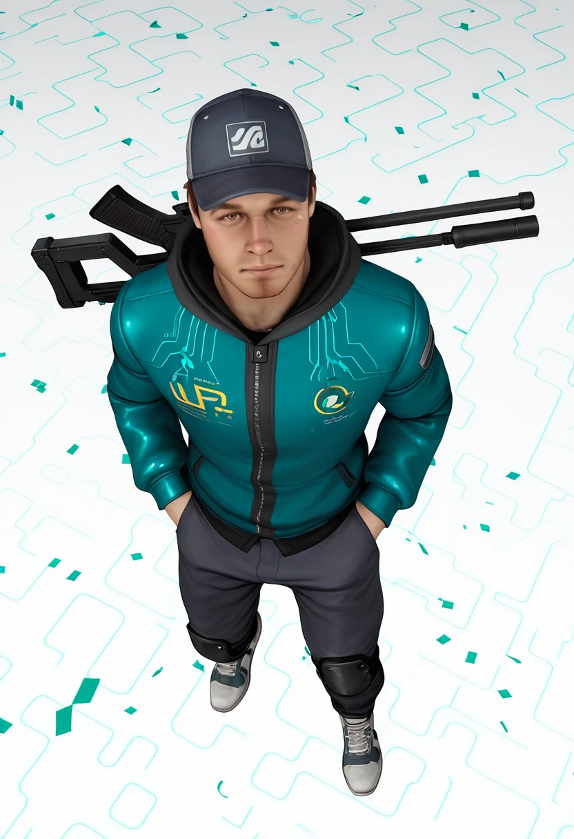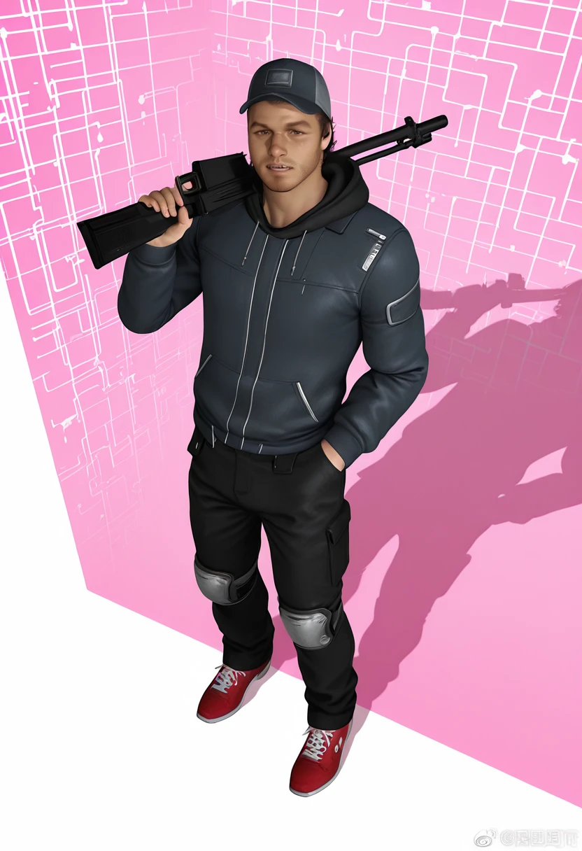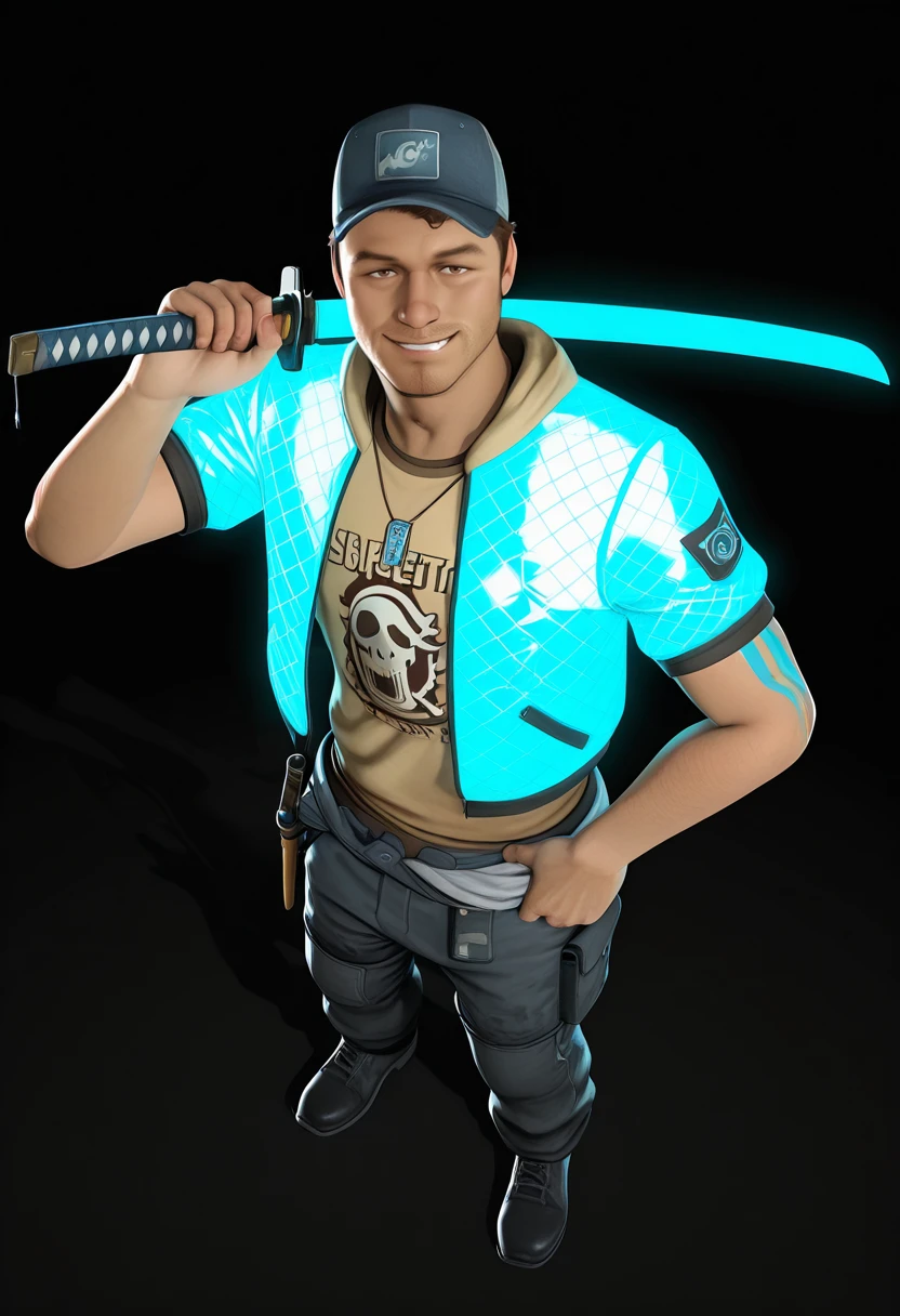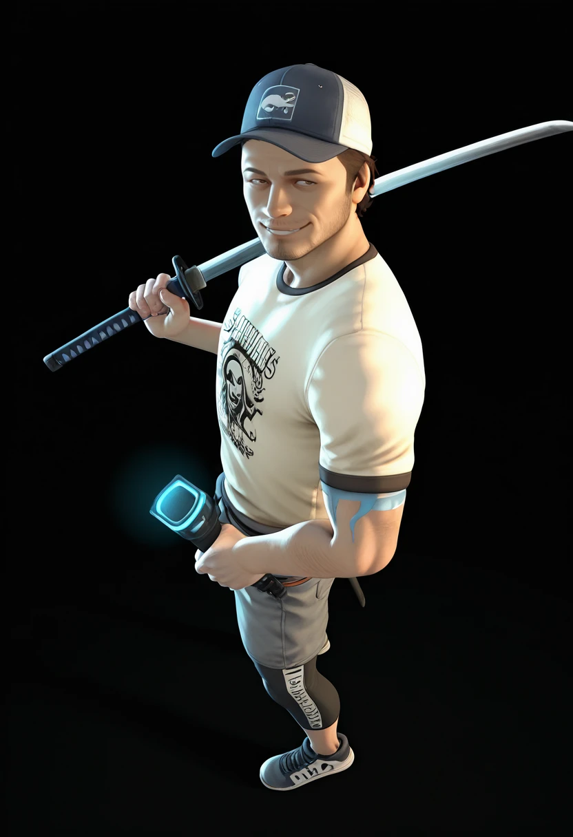 Ellis_L4D2, 3D_style, realistic, 1boy, male focus, facial hair, baseball cap, hat, , solo, stubble,