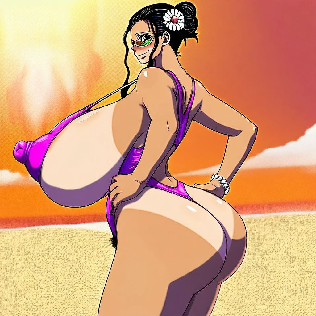cattmashy, mature female, black hair, glasses, green eyes, low side ponytail, frilled hair scrunchie, huge nipples, wide hips, curvy, thick thighs, female pubic hair