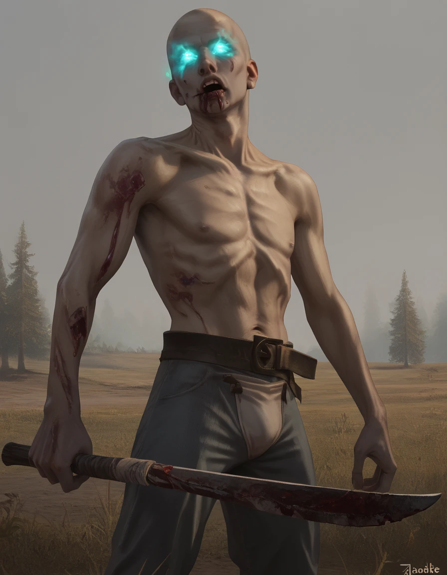 Z0mbie, glowing eyes, holding weapon, belt, blood, wounds, rotting,Let me know what other Warhammer LORAs you'd be keen to see!