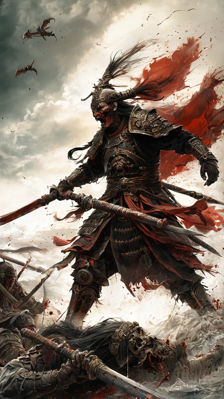 AiARTiST,Ancient general,Battle ,bloody sky,bloody river,death monster,bloody night<lora:AiARTiST-JueChen:0.7>