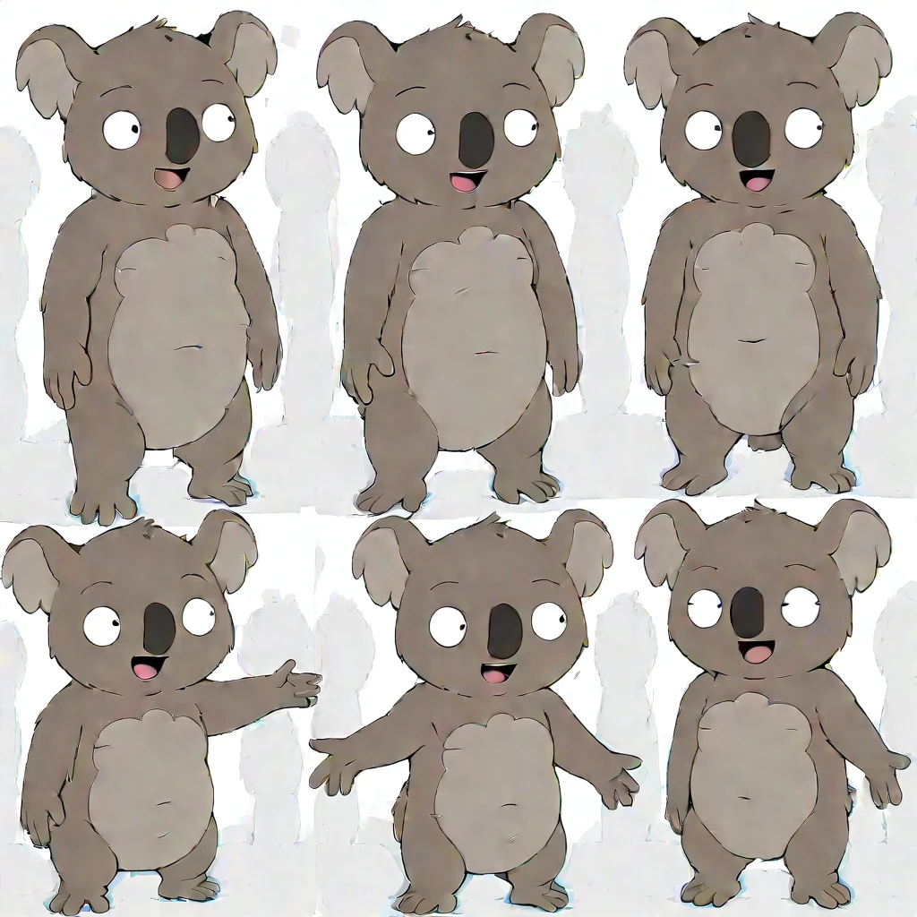 anthro, furry, koala, koala snout, multi-colored fur, black eyes