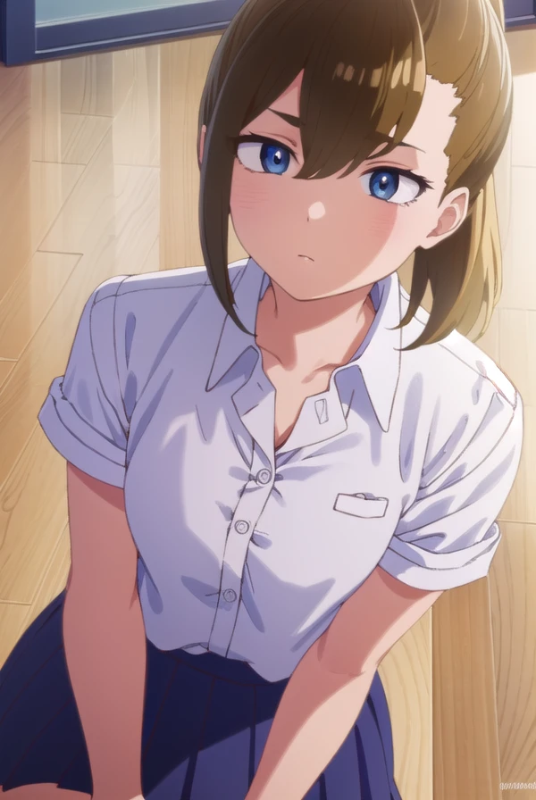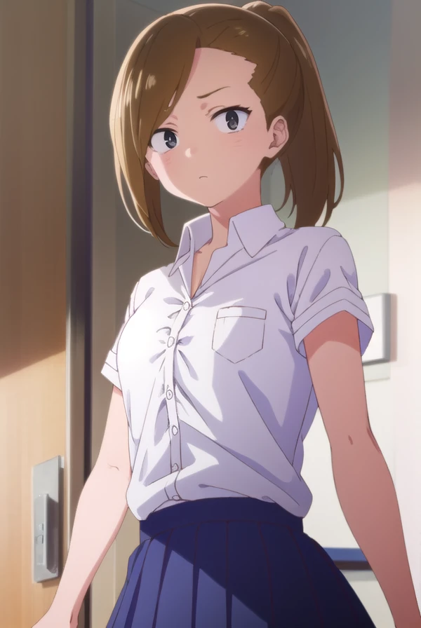 serina yoshida, brown hair, ponytail, (black eyes:1.5),