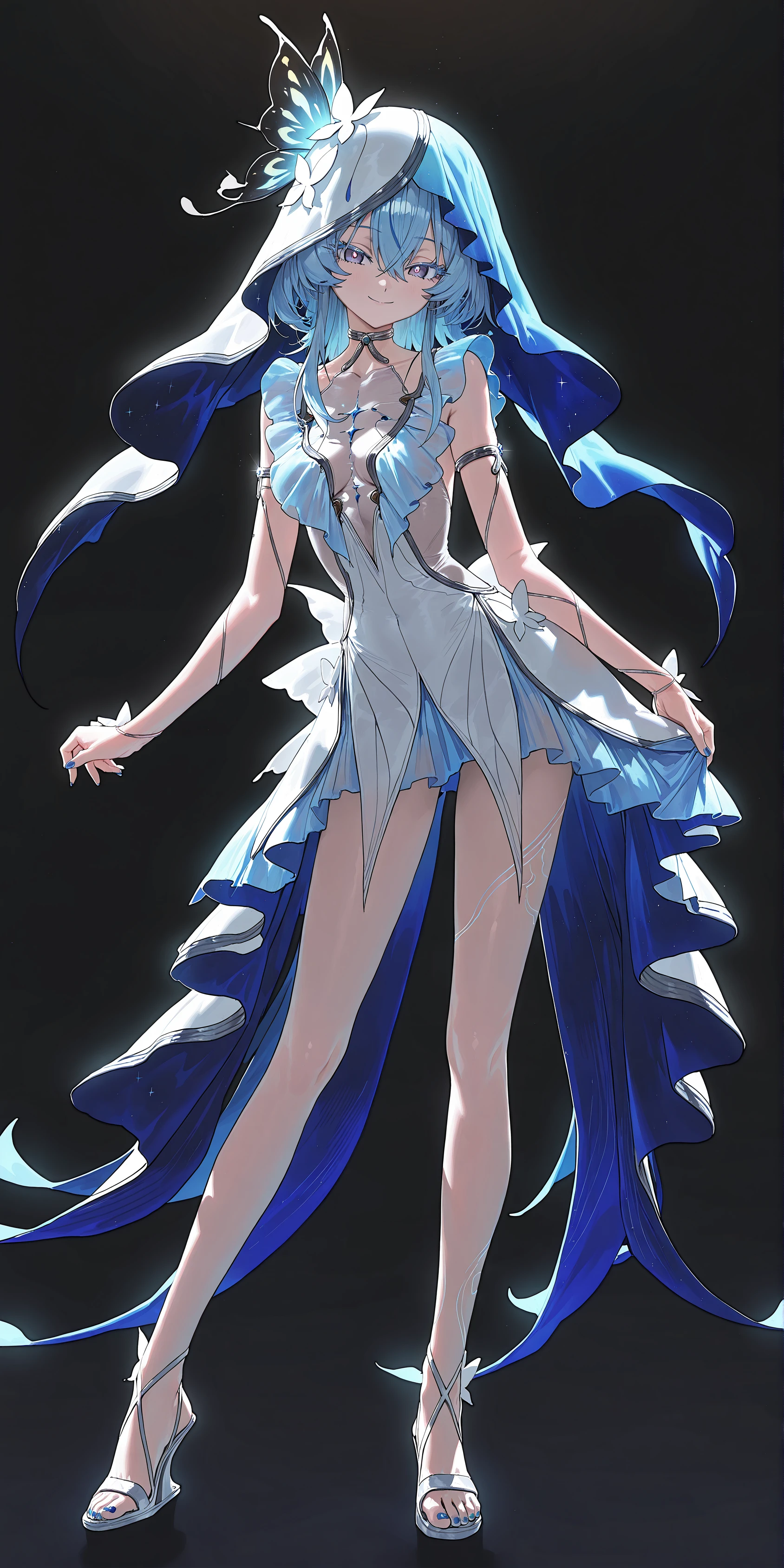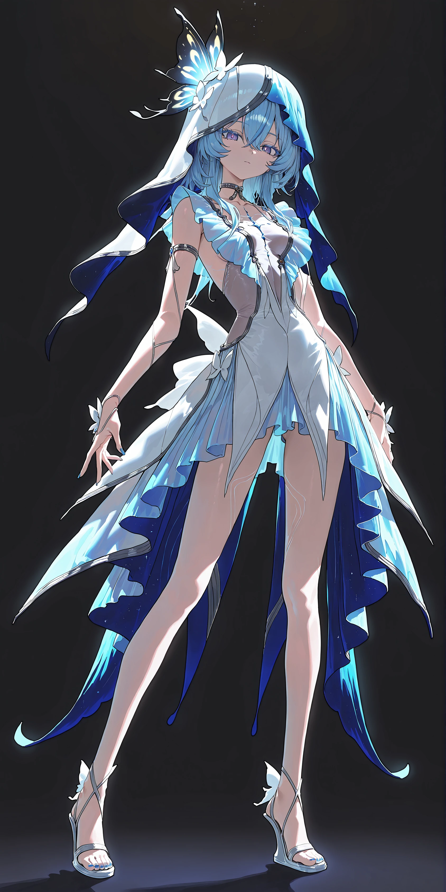 butterfly hair ornament,two-tone veil, silver choker,blue nails,