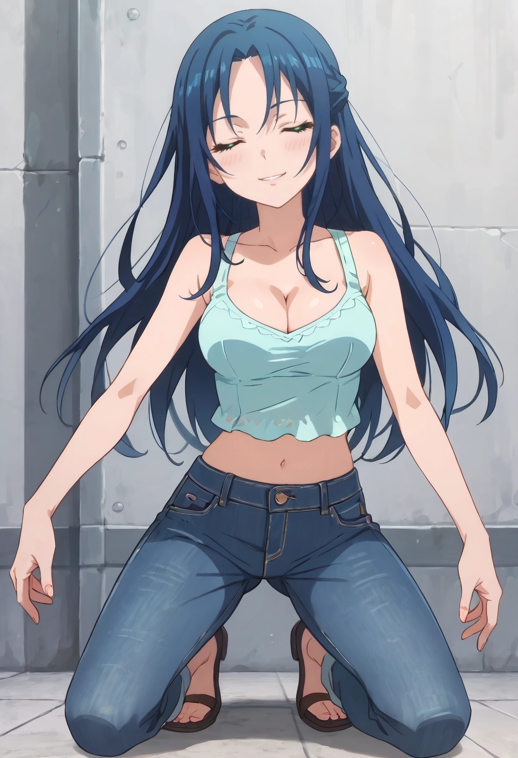 SMSMiharu, long hair, blue hair, green eyes, hair between eyes,